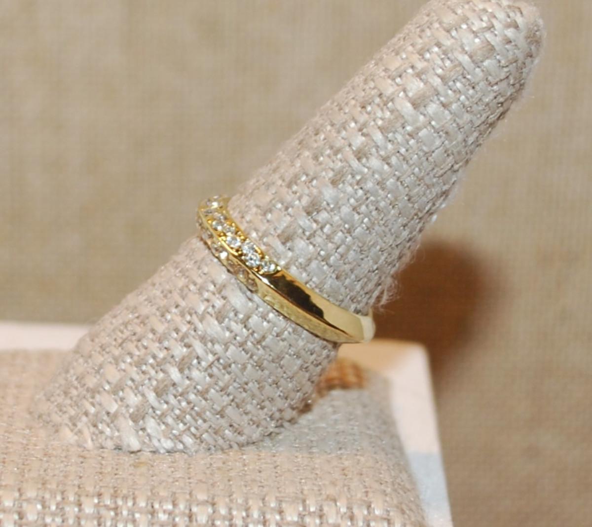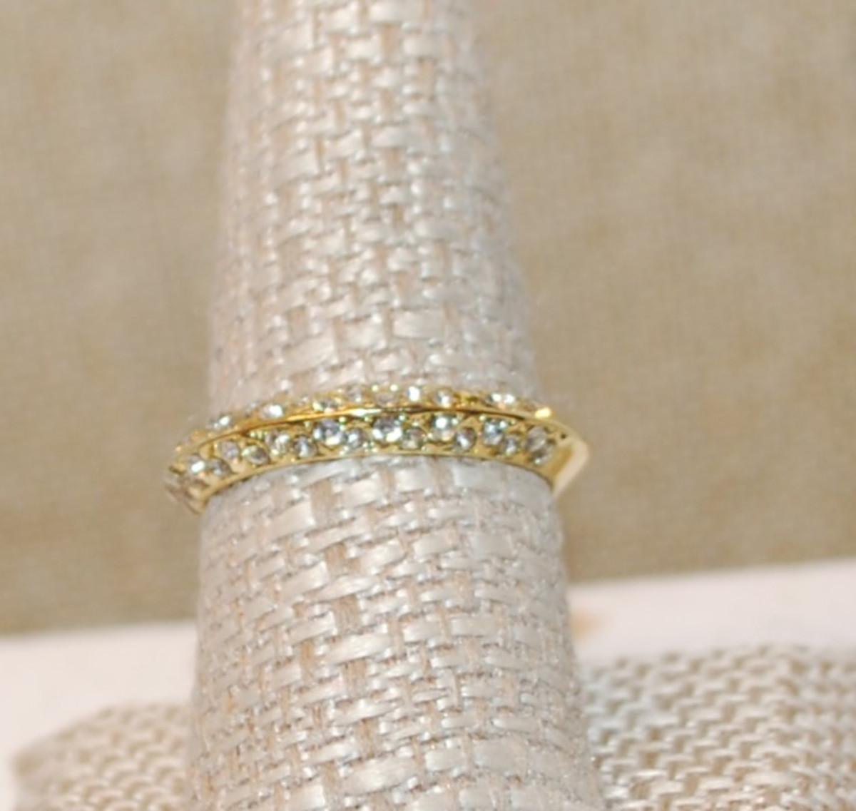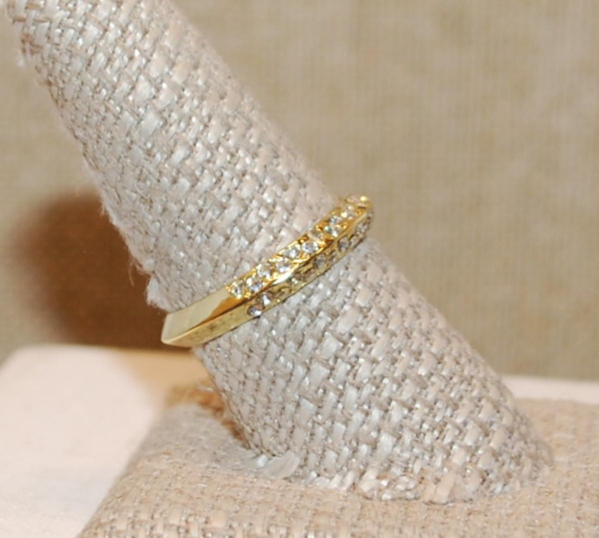 Size 9 Half Infinity Style Ring & Clear Stone Accents on a Beveled Gold Tone Band (3.1g)