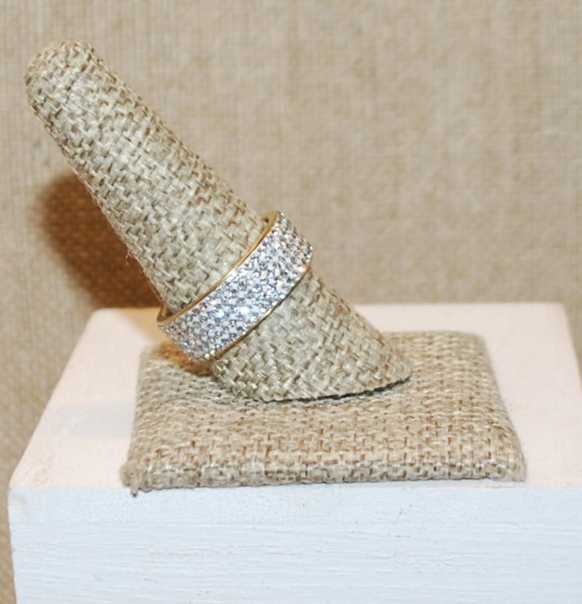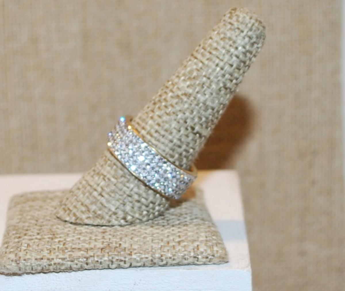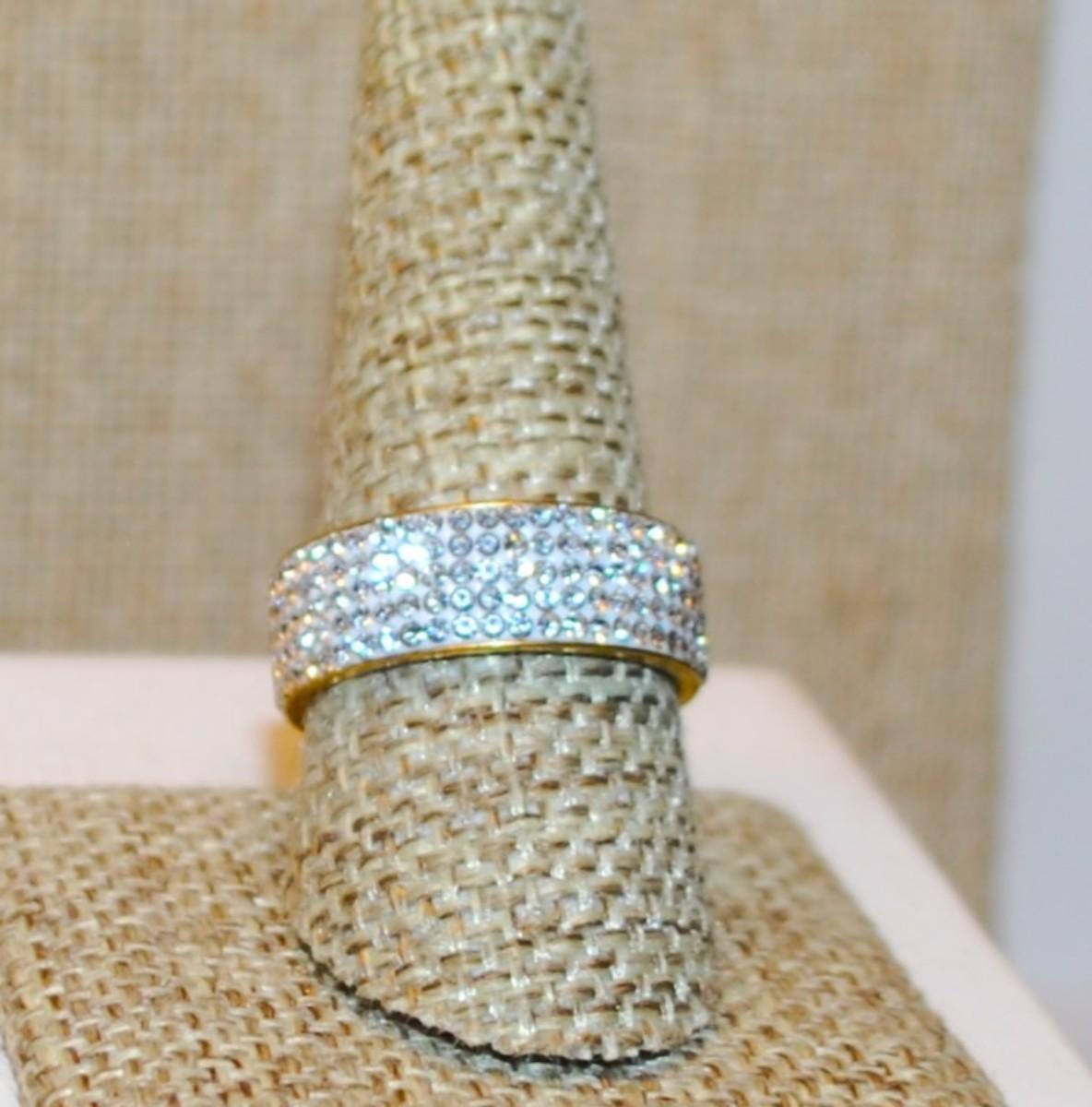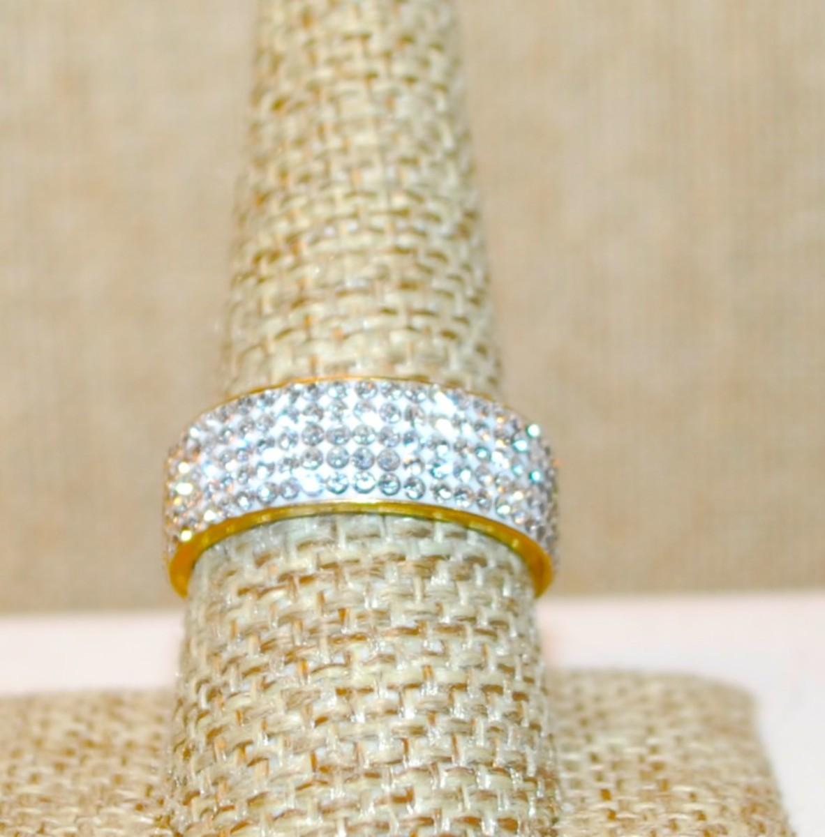 Size 9 ¼ Infinity Style Ring with 5 Rows of Glitter Stones on a Gold Tone Band (4.1g)
