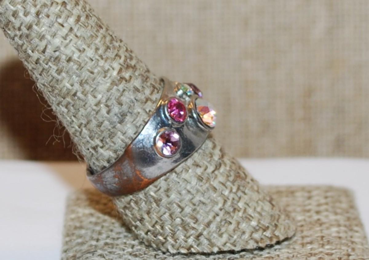 Size 9 Iridescent Beveled & Cupped Stones RING on a Blemished Copper/Silver Tone Band (4.6g)