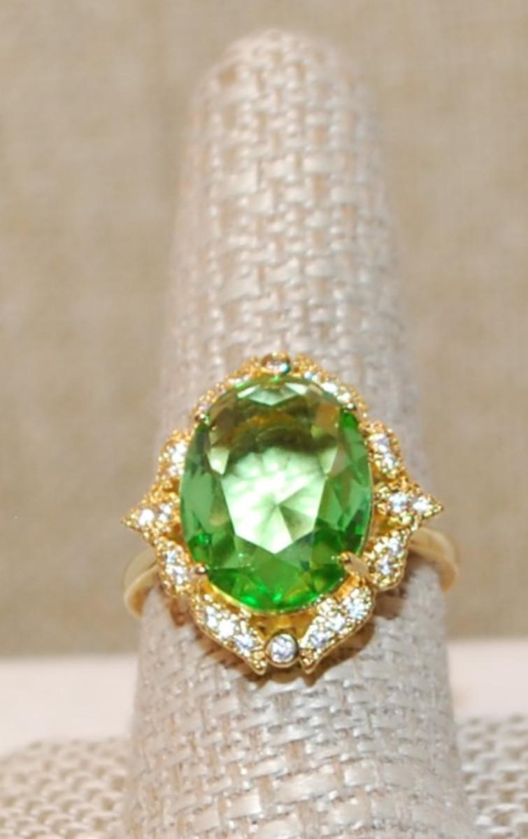 Size 9½ Large Green Long Oval Style Ring on a Nest Type Setting on a Gold Tone Band (5.8g)