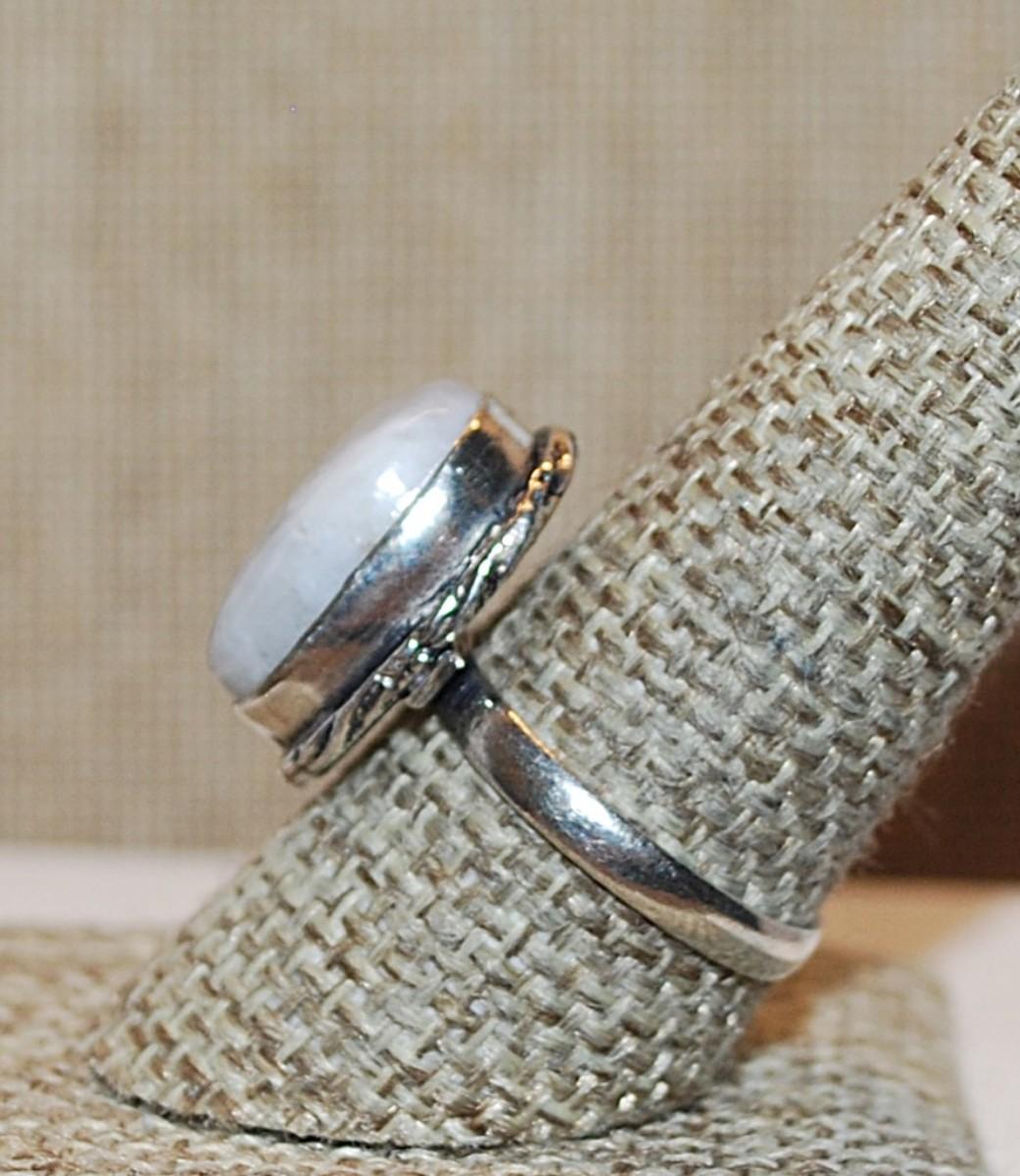 Size 9½ Marked .925 Opaque Oval White CABOCHON Gemstone Ring on a Silver-Plated Band (5.2g)