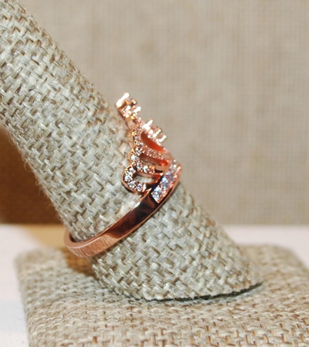 Size 9½ Marked .925 Rose Gold Ring with the "Queen's Crown" Setting on a Silver Filled Band (4.1g)