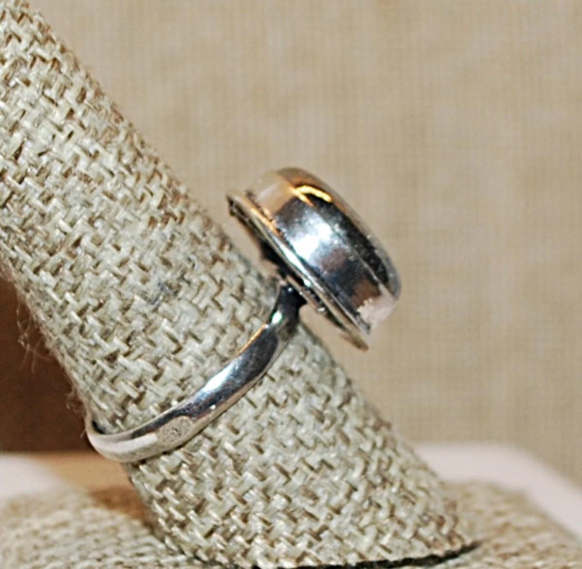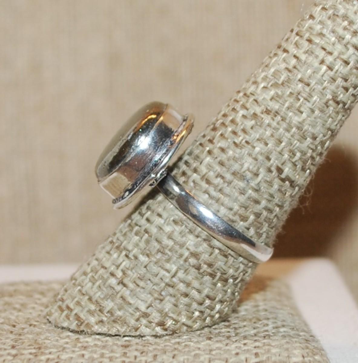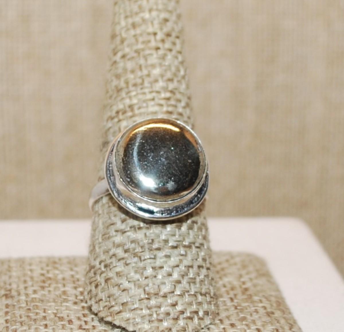 Size 9 Marked .925 Round Shaped GOLD PYRITE Gemstone Ring on a Silver-Plated Band (6.2g)