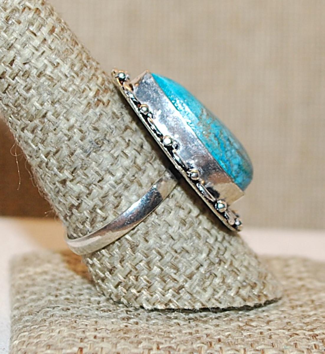 Size 9½ PEAR Shaped Crackled TURQUOISE Gemstone Ring with a Full Surround on a Silver Tone Band (6.7g)