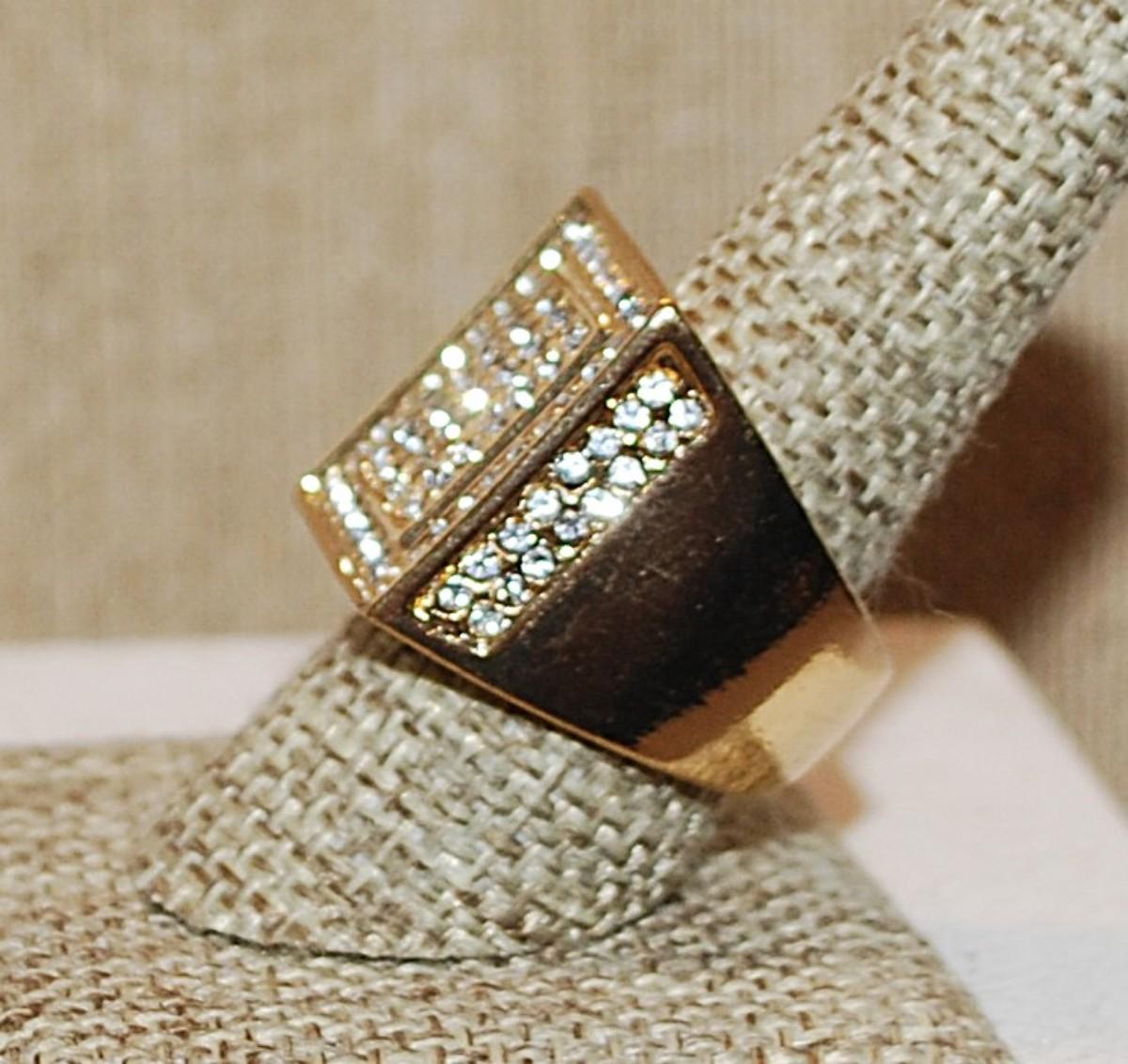 Size 9½ Pre-Owned Rows & Rows of Clear Glittery Stones Party Ring on a Solid Gold Tone Band (16.7g)