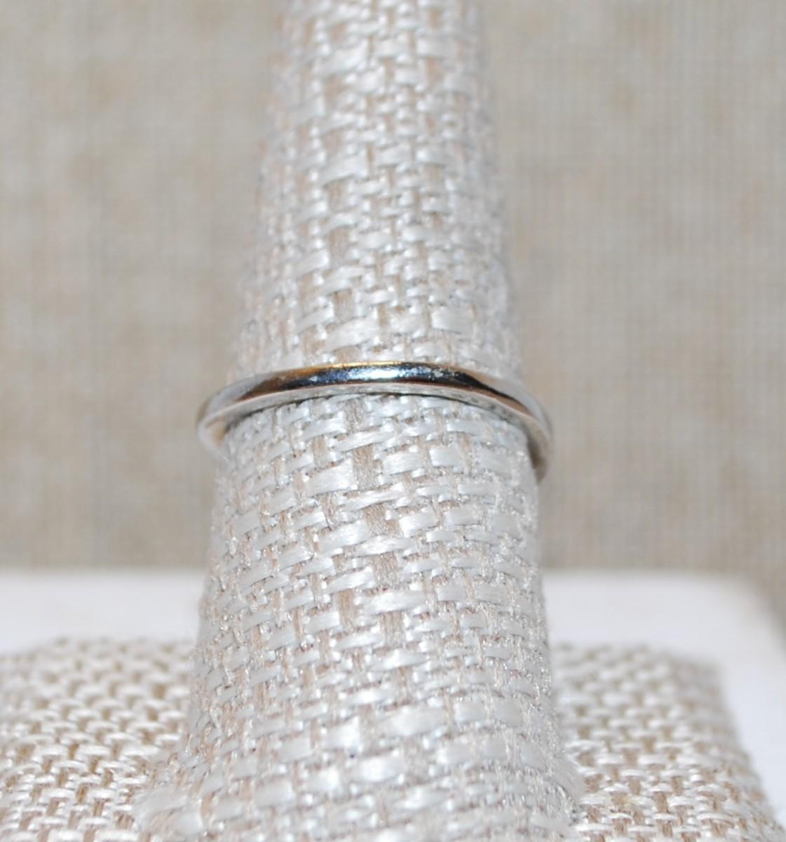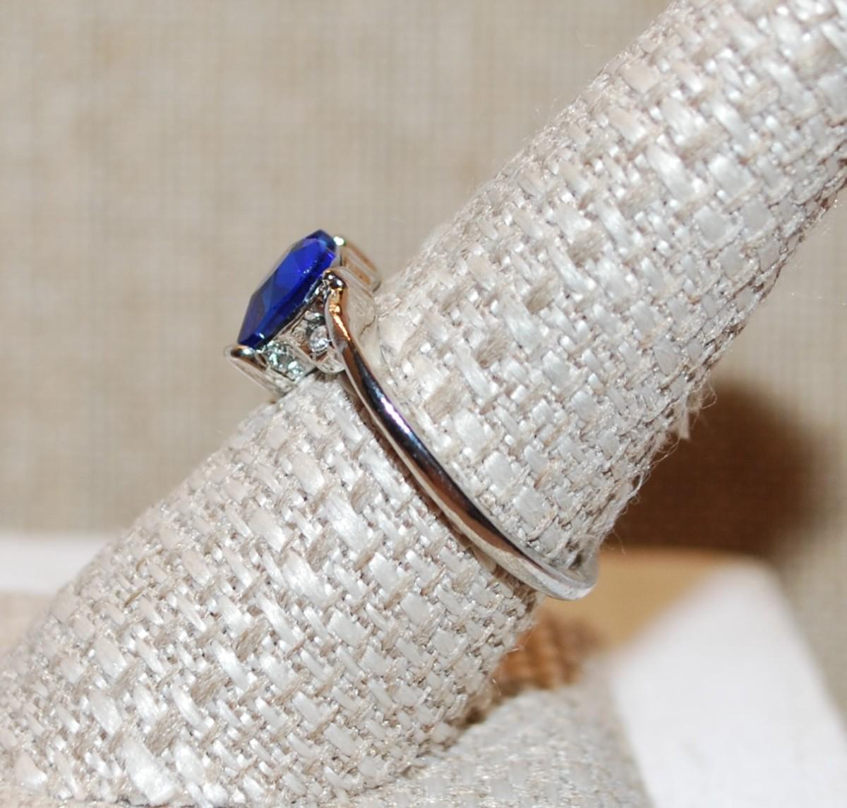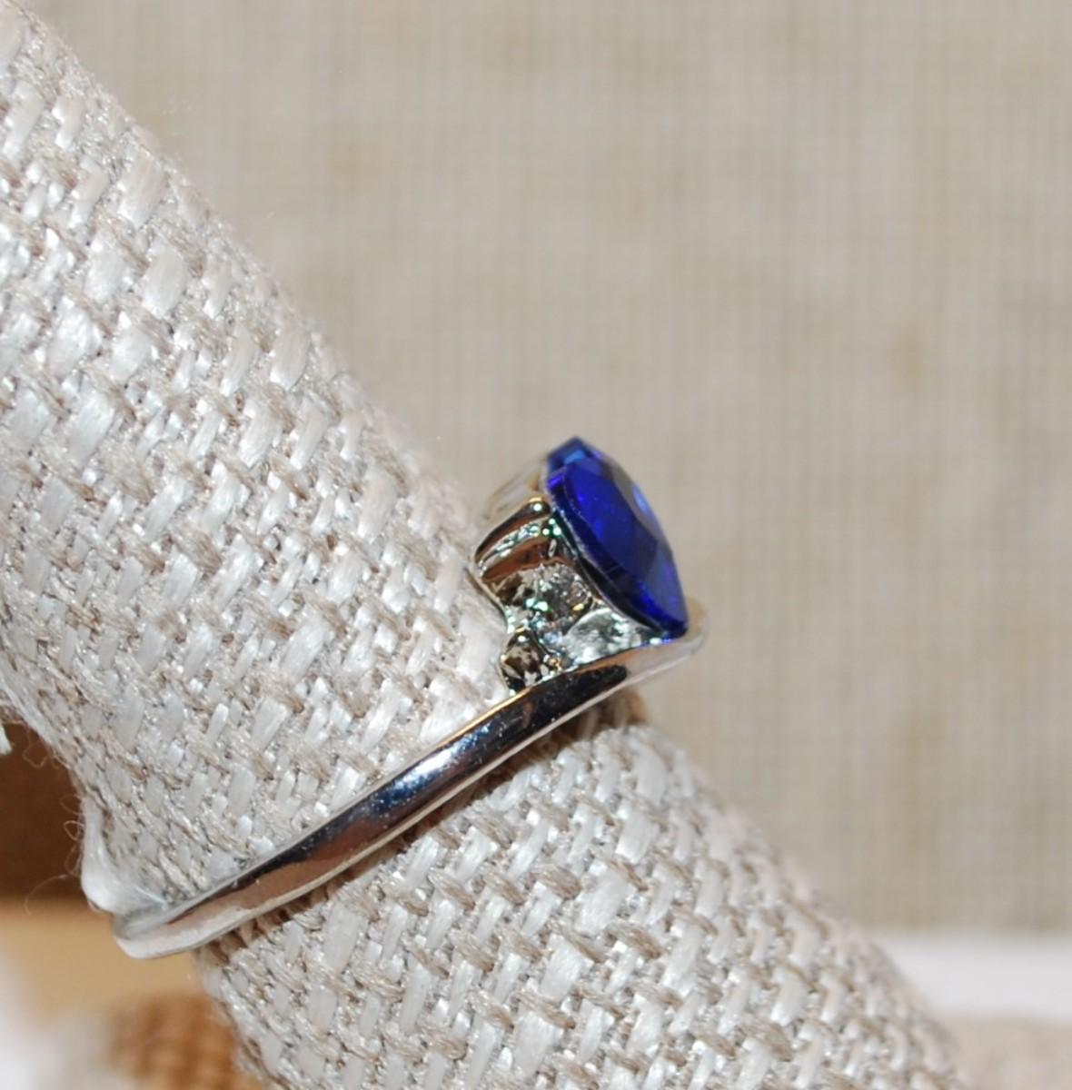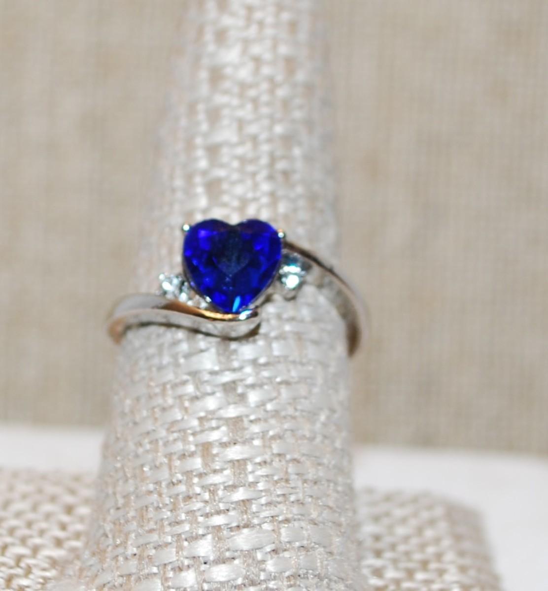 Size 9 Single Deep Blue Heart Shaped Stone on a Silver Tone Band (3.3g)
