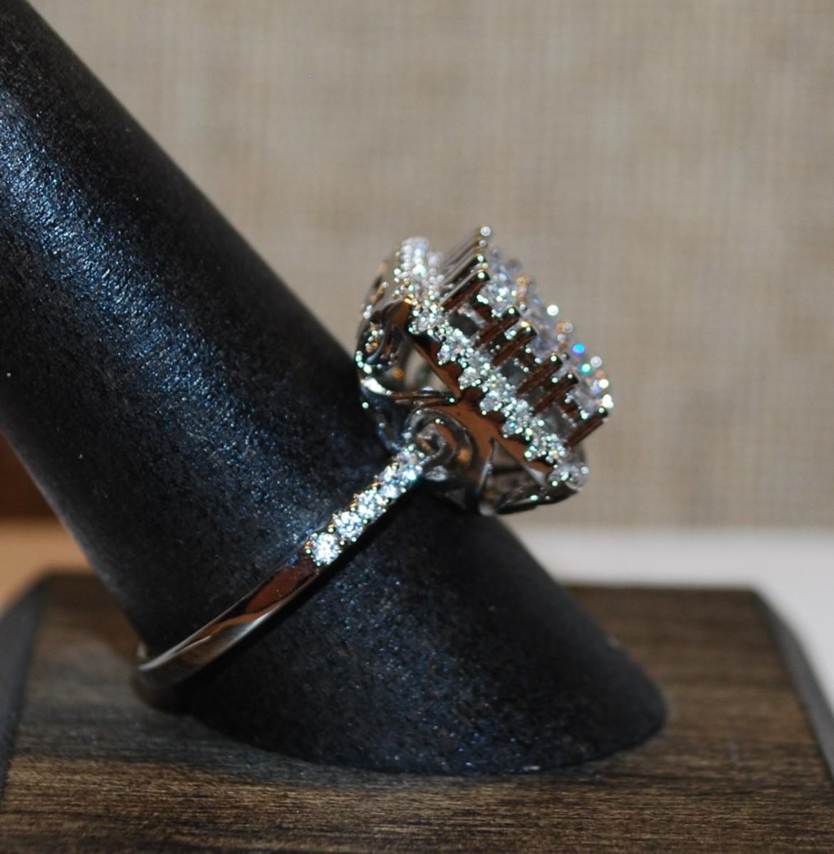 Size 9¼ Square Basket Setting Ring with 9 Center Stones and More Clear Accents on a Silver Tone Band (4.8g)