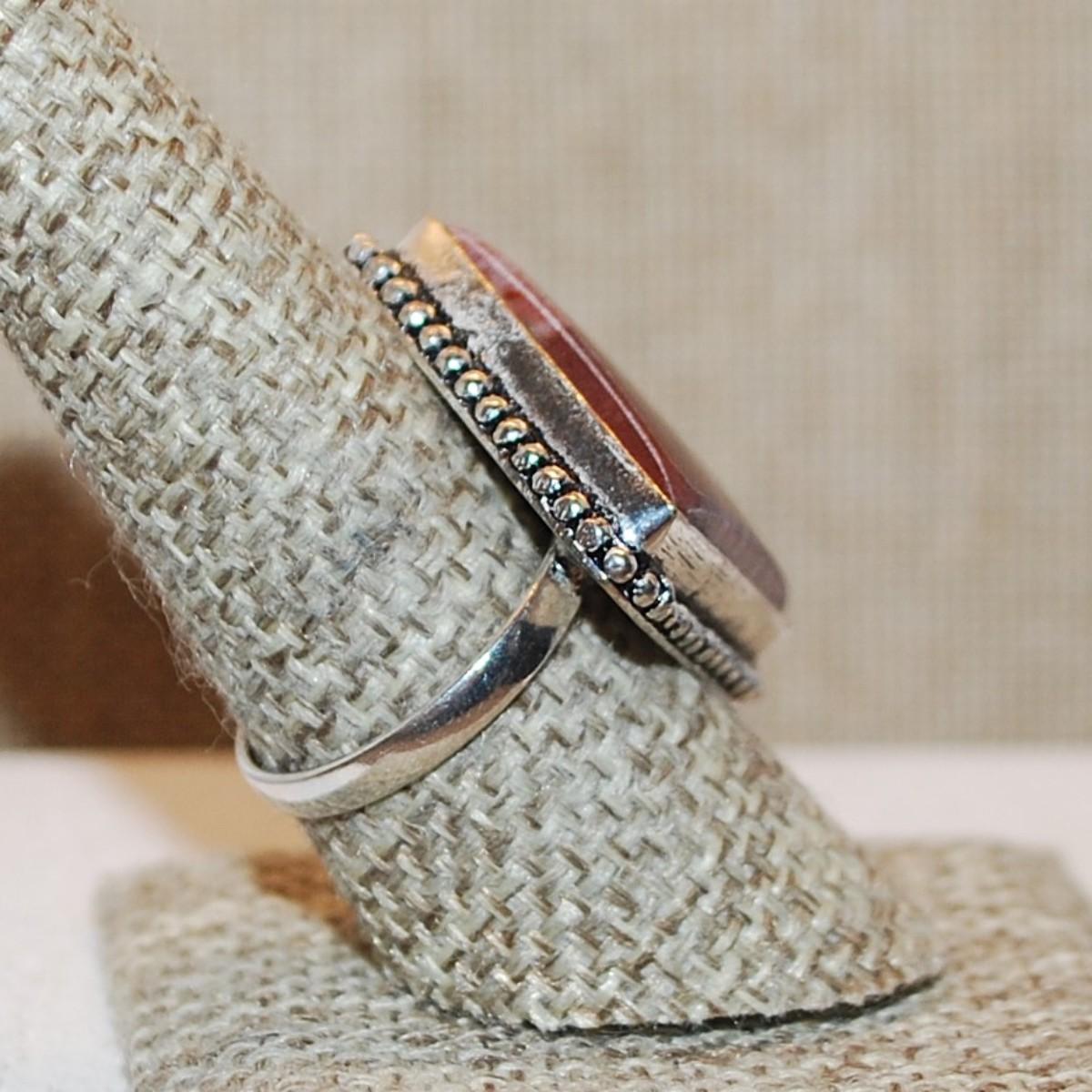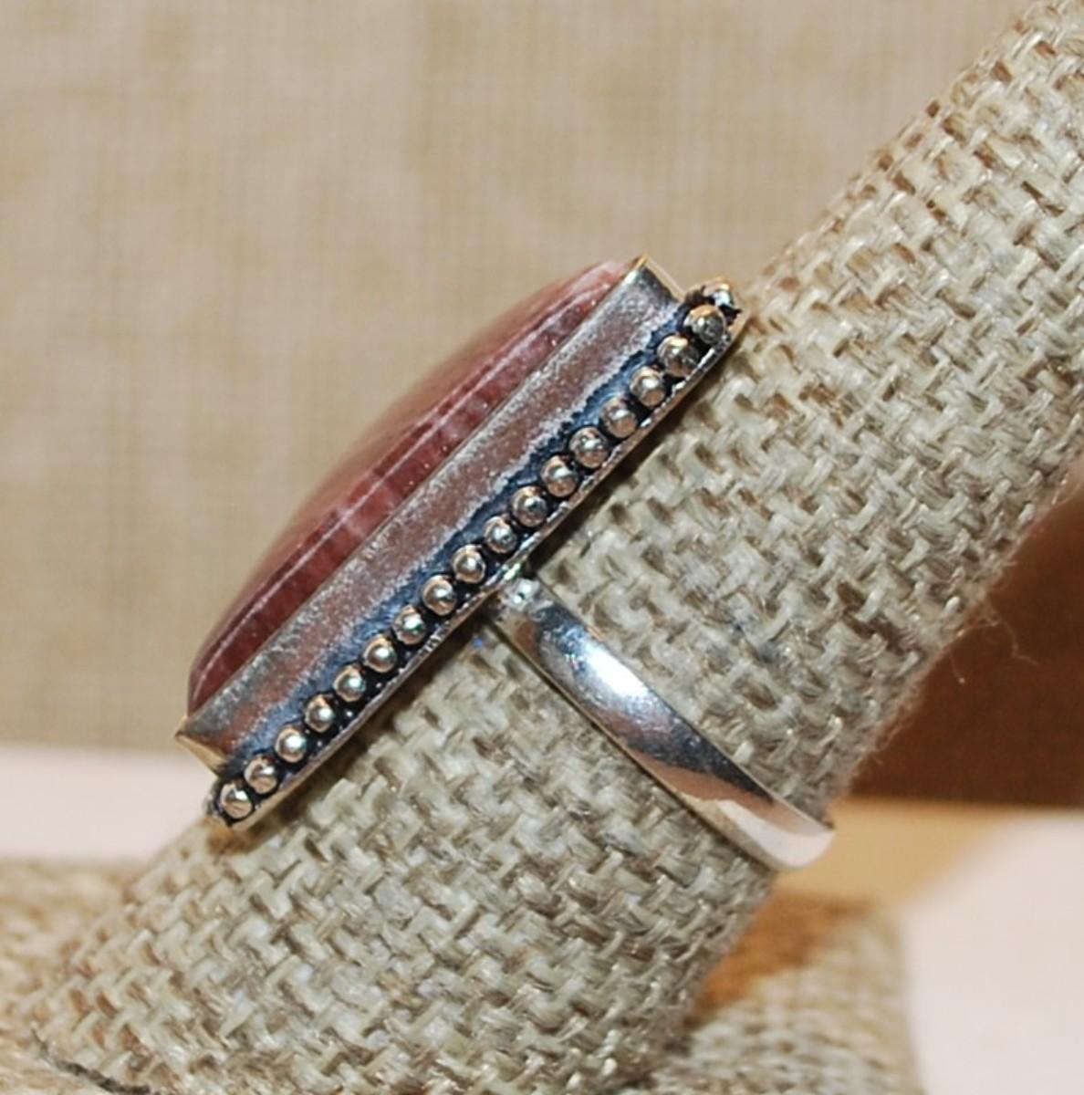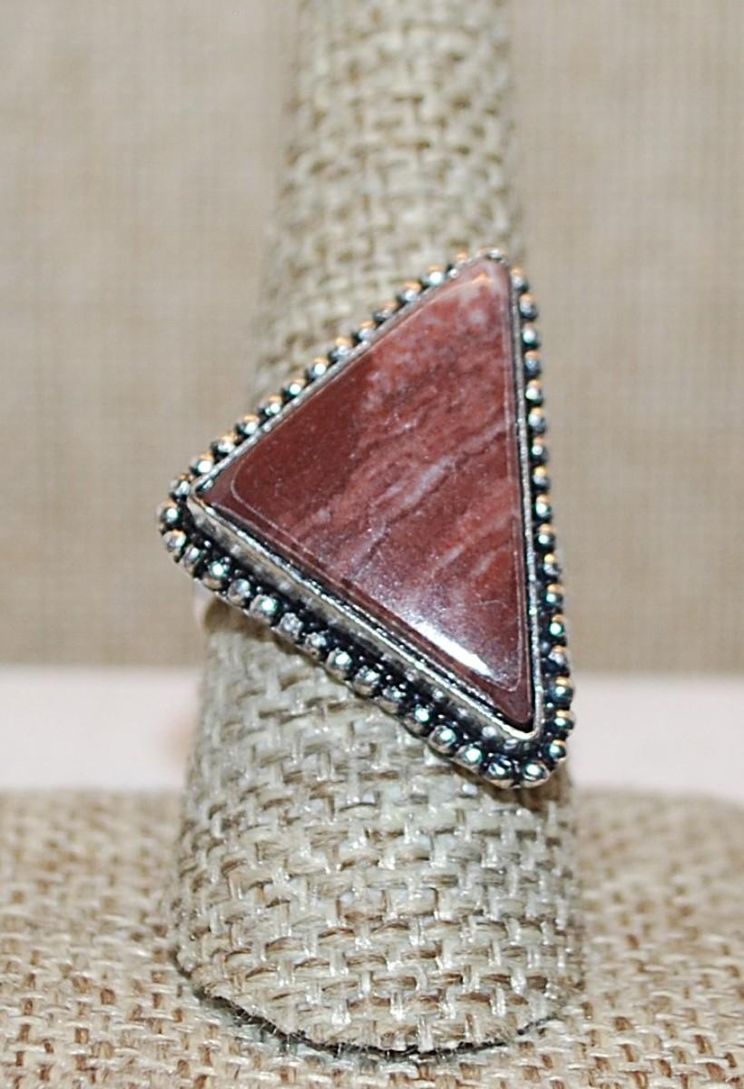 Size 9¼ Triangle Shaped MAROON Colored AGATE Gemstone with Full Rope Surround on a Silver Tone Band (7.5g)
