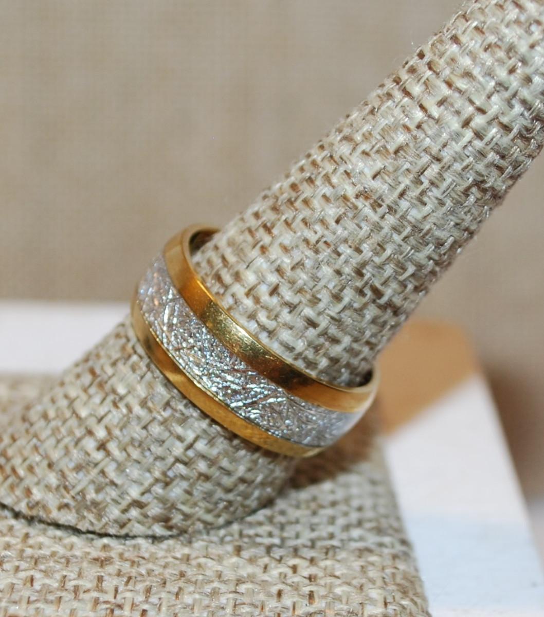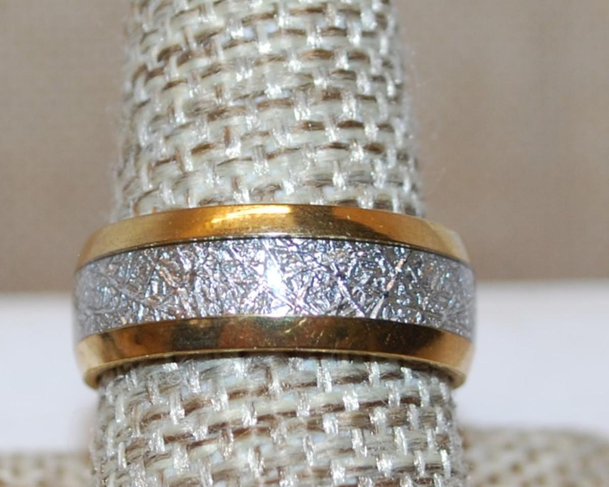 Size 9¼ Two-Tone Eternity Type Gold Style Edged Ring with Silvery Middle Grove (4.7g)