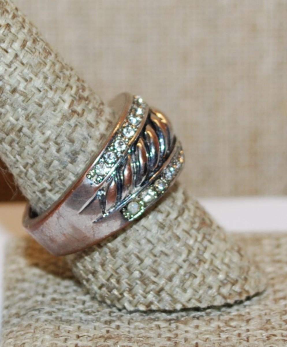 Size 9 Two-Tone Rose Gold & Silver Tone RING with Half Infinity Clear Stones Rows and Light "Copper" Band (10.0g)