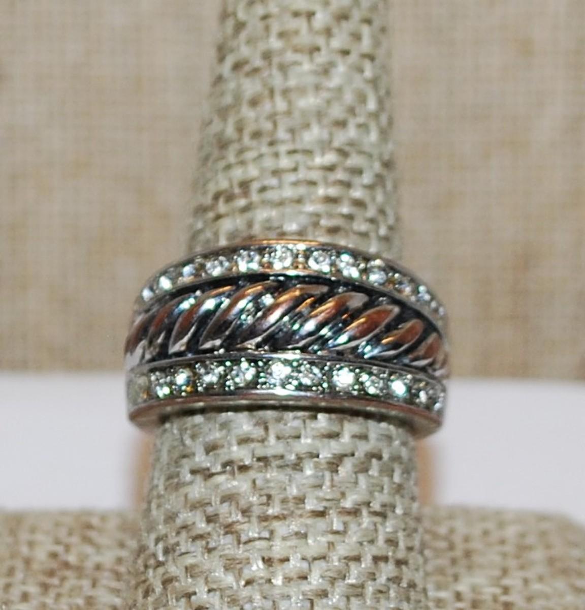 Size 9 Two-Tone Rose Gold & Silver Tone RING with Half Infinity Clear Stones Rows and Light "Copper" Band (10.0g)