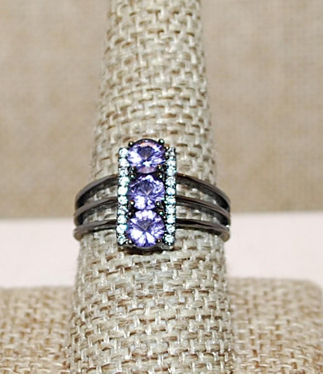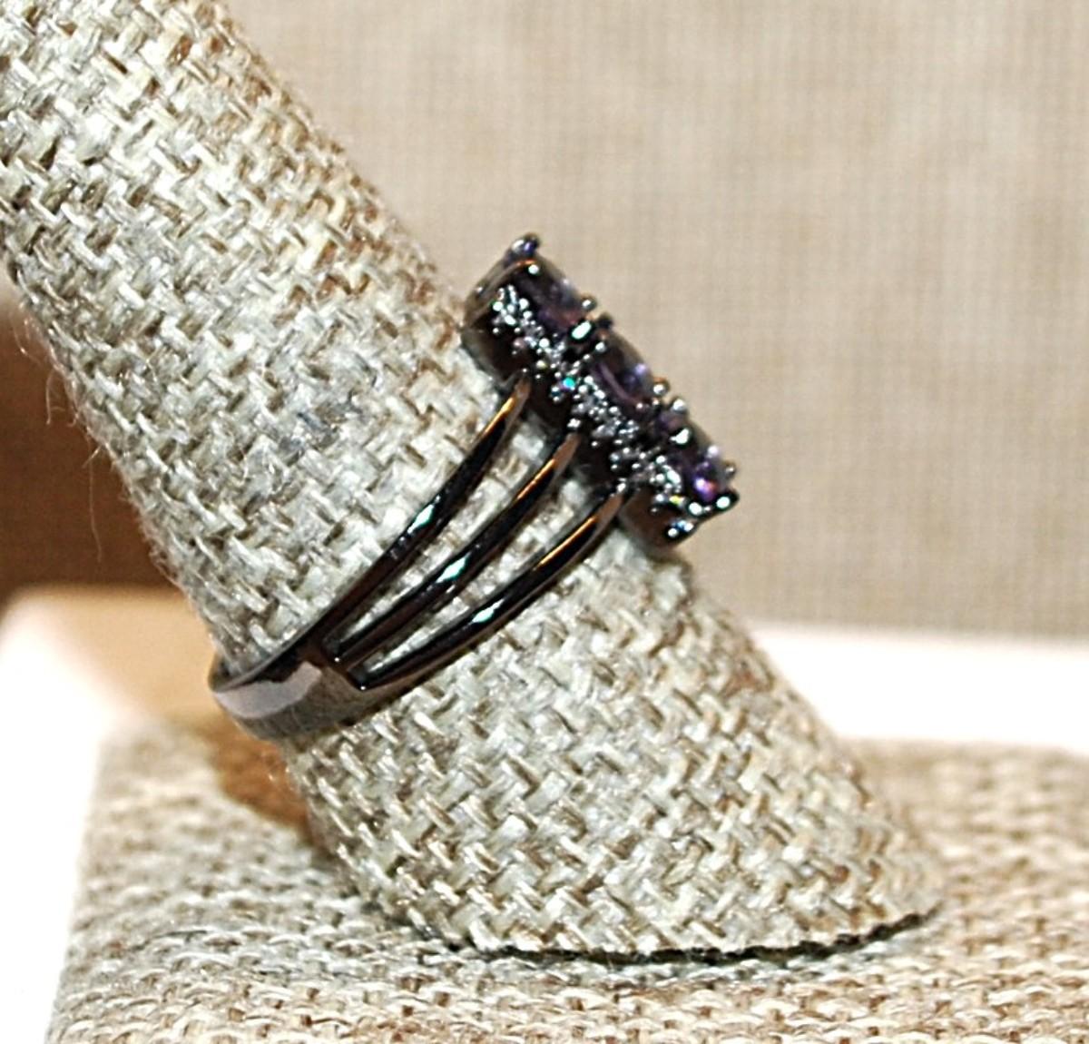 Size 9 Unique Triple PURPLE Round Vertical Stones Ring on an All Black Band (3.4g)