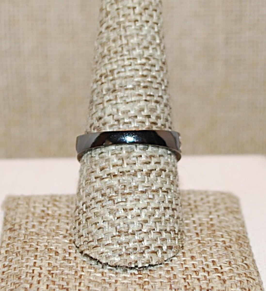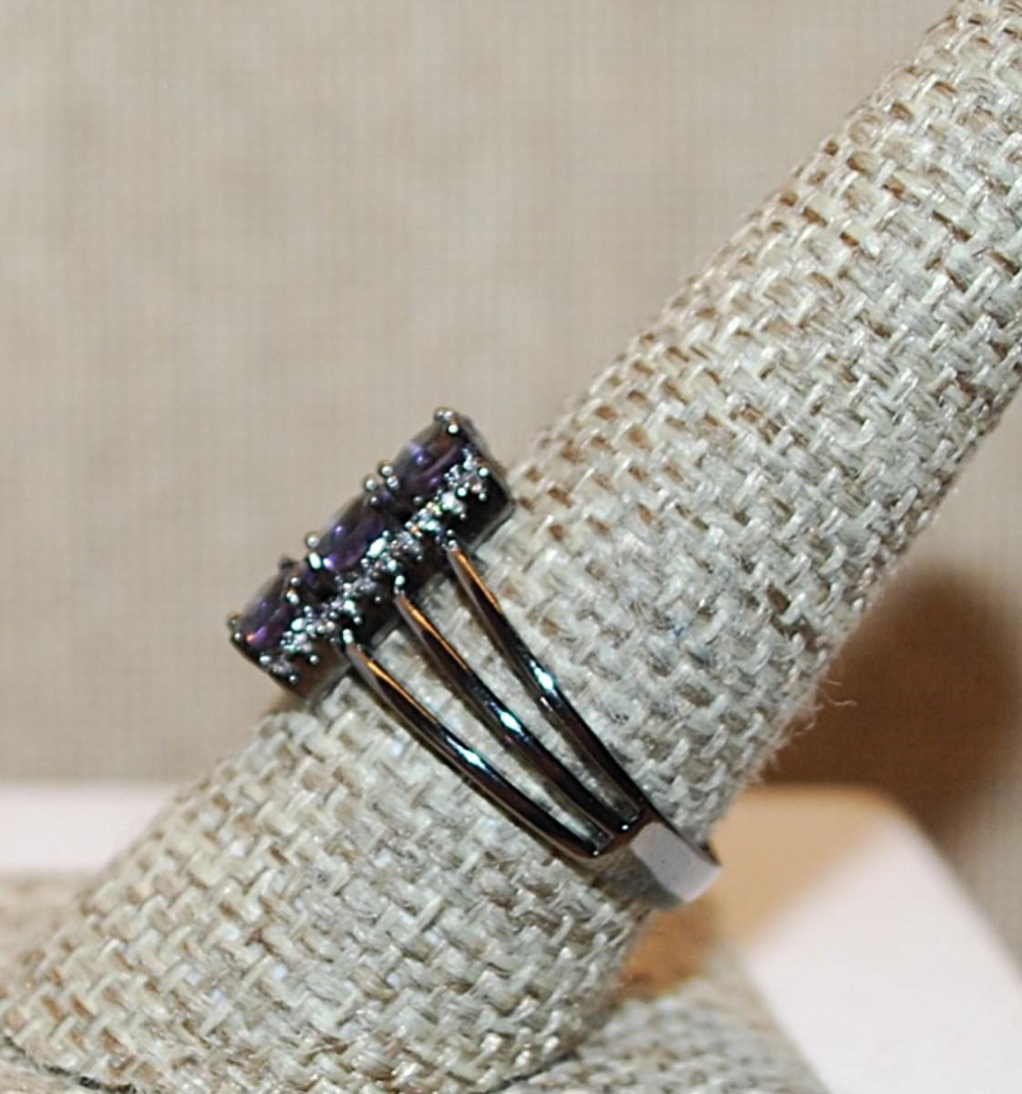 Size 9 Unique Triple PURPLE Round Vertical Stones Ring on an All Black Band (3.4g)