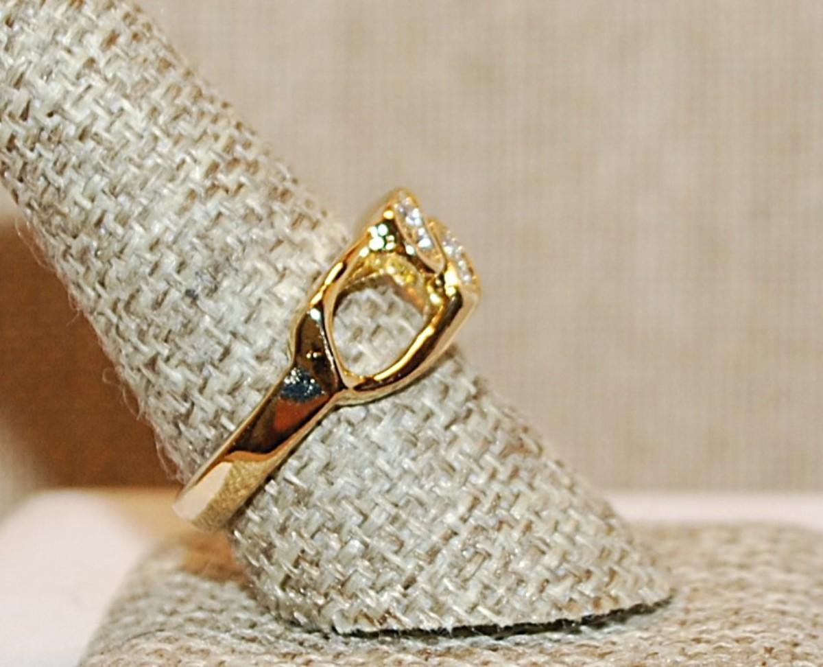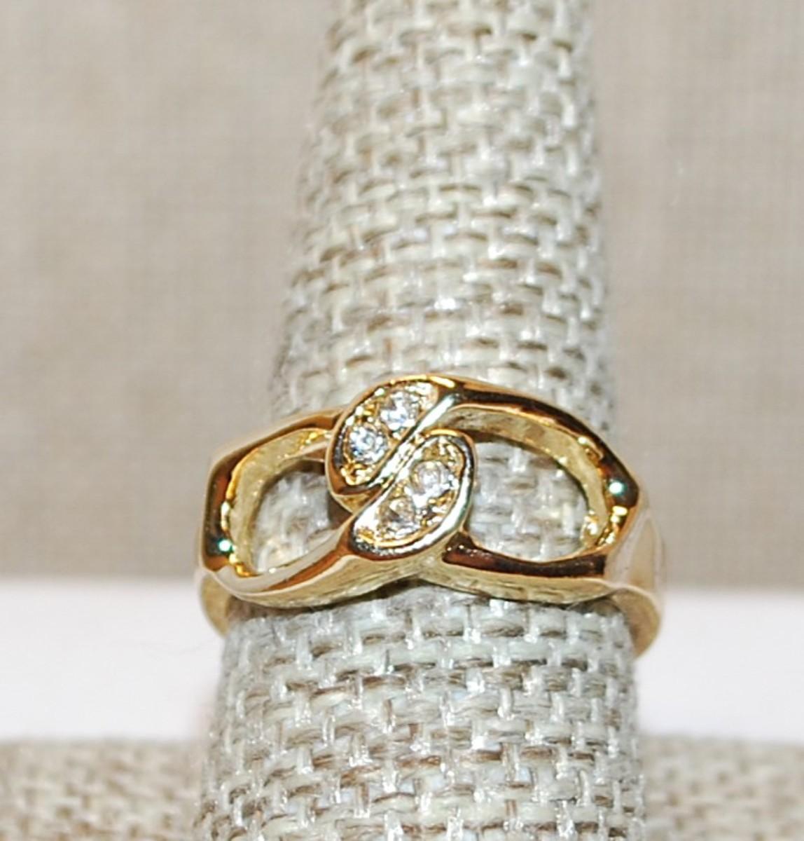 Size 9 ½ VINTAGE Double "Pod" Ring with 4 Clear Stones & Looped Setting and Gold Tone Band (6.5g)