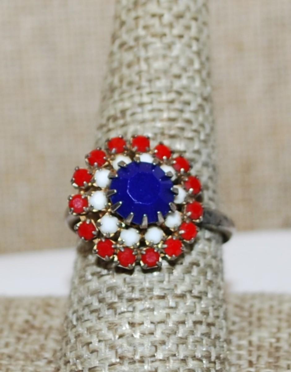 Size 9 VINTAGE Red, White + Blue "FLAG" RING with SPLIT BAND (4.1g)