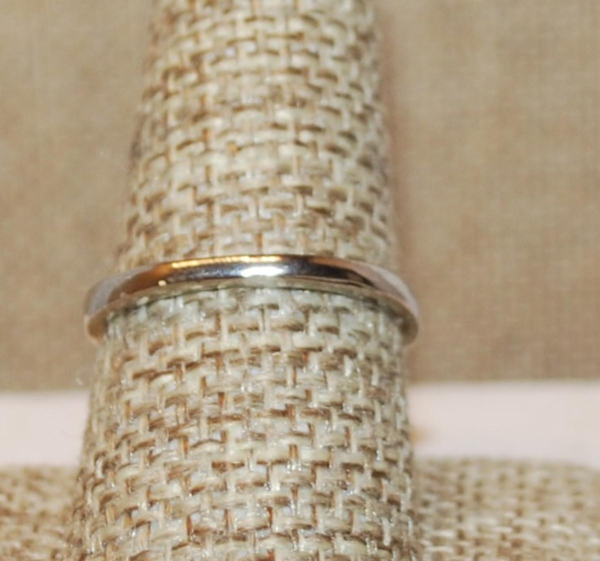Size 9 White CROWN Enamel Ring & Round Clear Stone Top on a Silver Tone Band (4.1g)