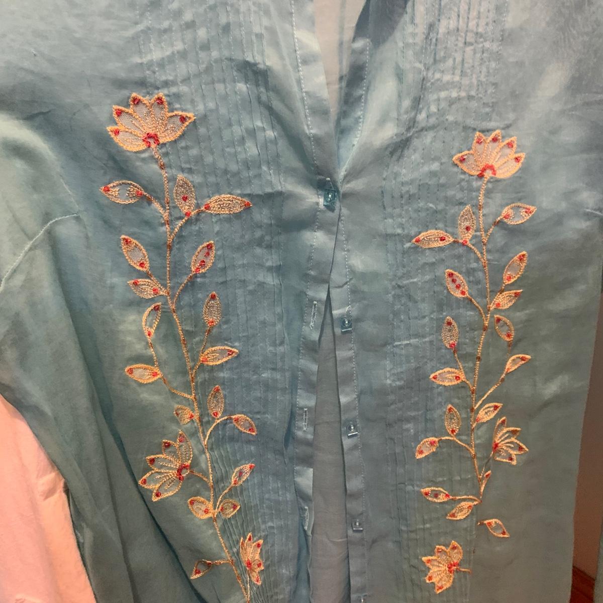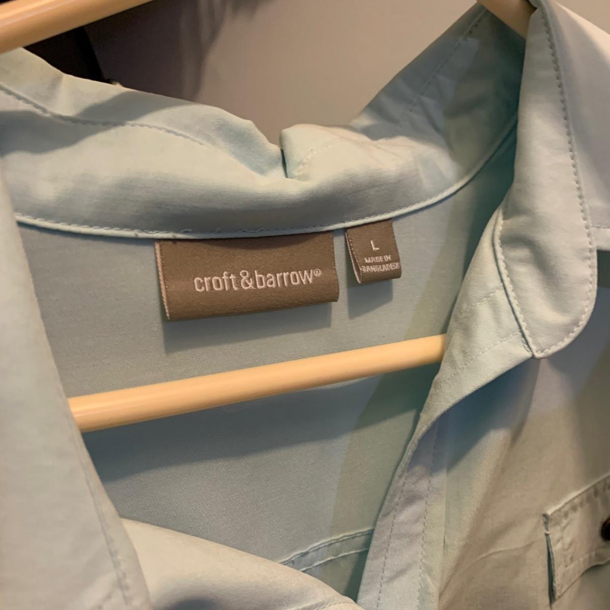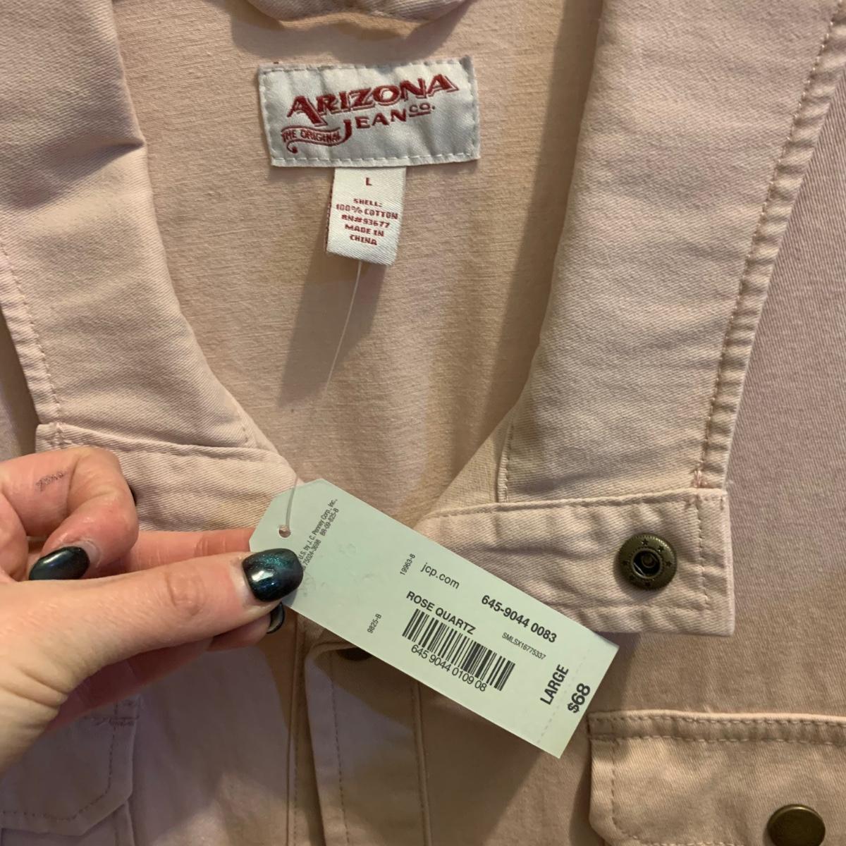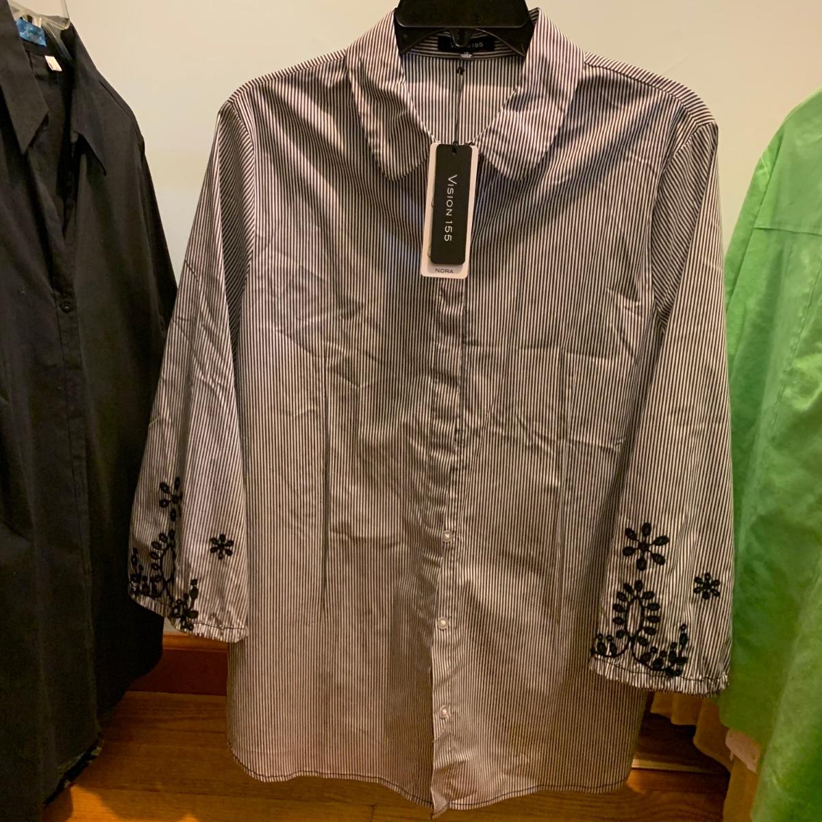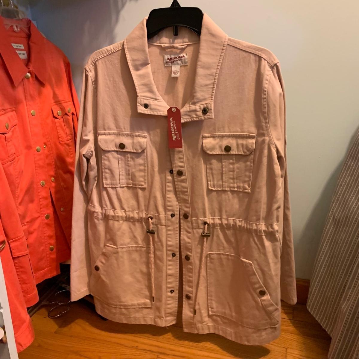 23 ladies button down tops plus six lightweight jackets. Many items are new with the tags still attached. All are size L. All items appear to be in very good condition, with the exception of some light yellow stains on the white Jones New York jacket.
