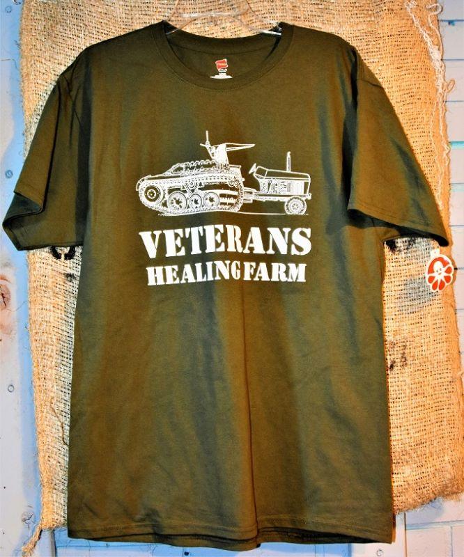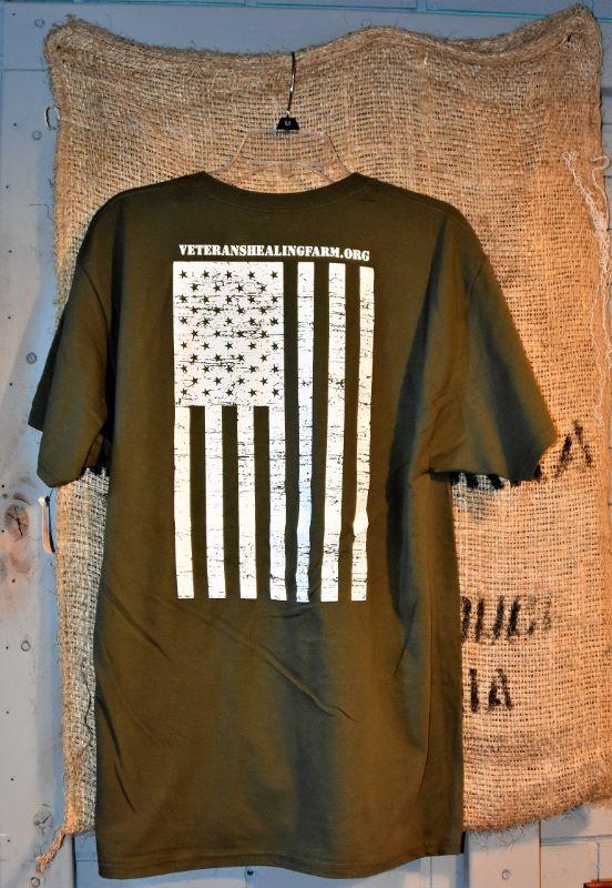 Size Large Army Green Veterans Healing Farm T-Shirt
