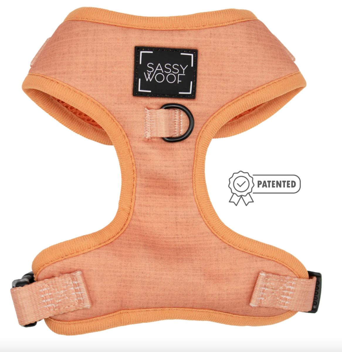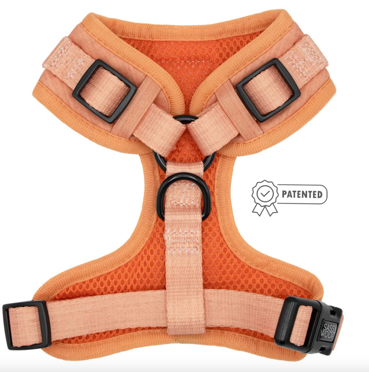Size Large Sassy Woof Adjustable Neoprene Dog Harness Vest w/No Pull D-Ring in Apple Cider Orange & Rose Gold Hardware