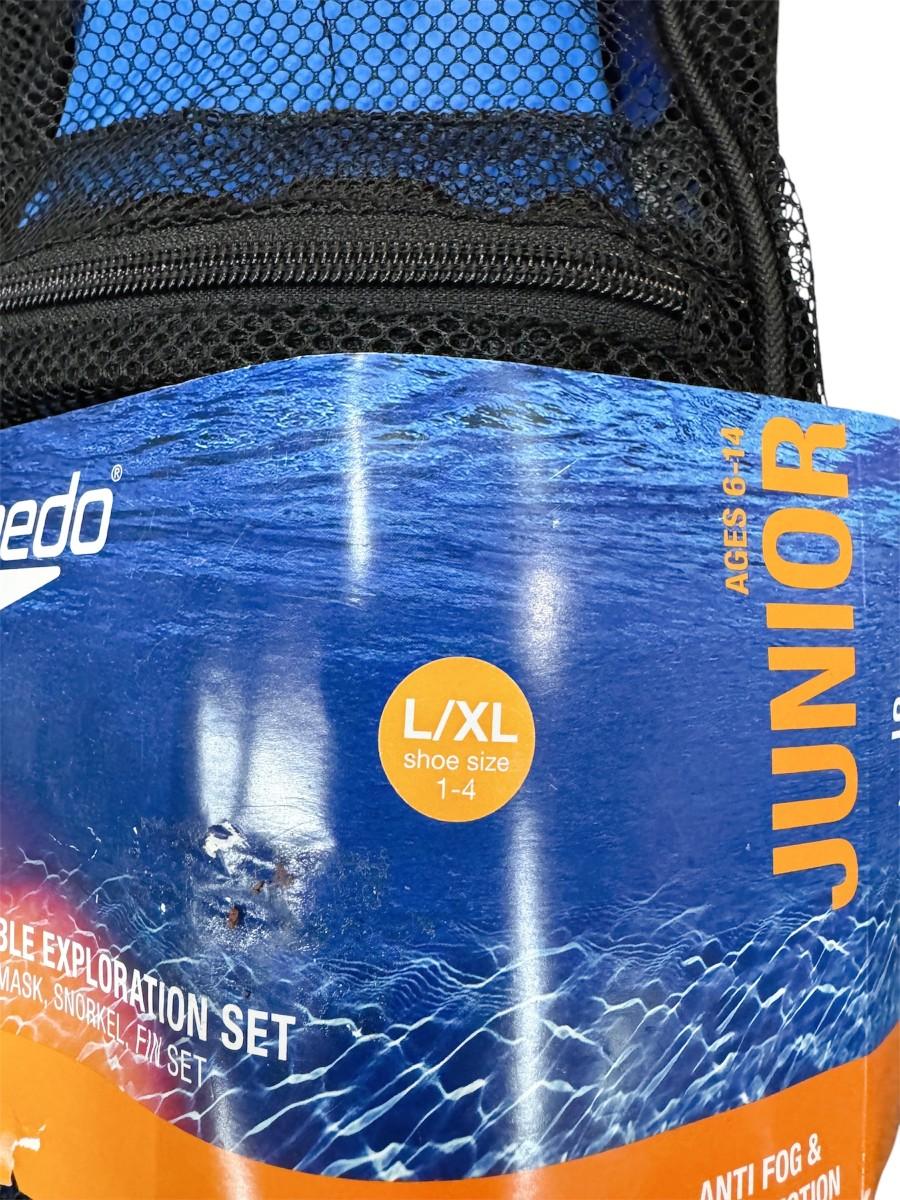 Size L/XL (Shoe Size 1-4) Junior 6-14 Speedo Comfortable Exploration Snorkel & Fin Set Soft Secure Fit Adjustable Straps