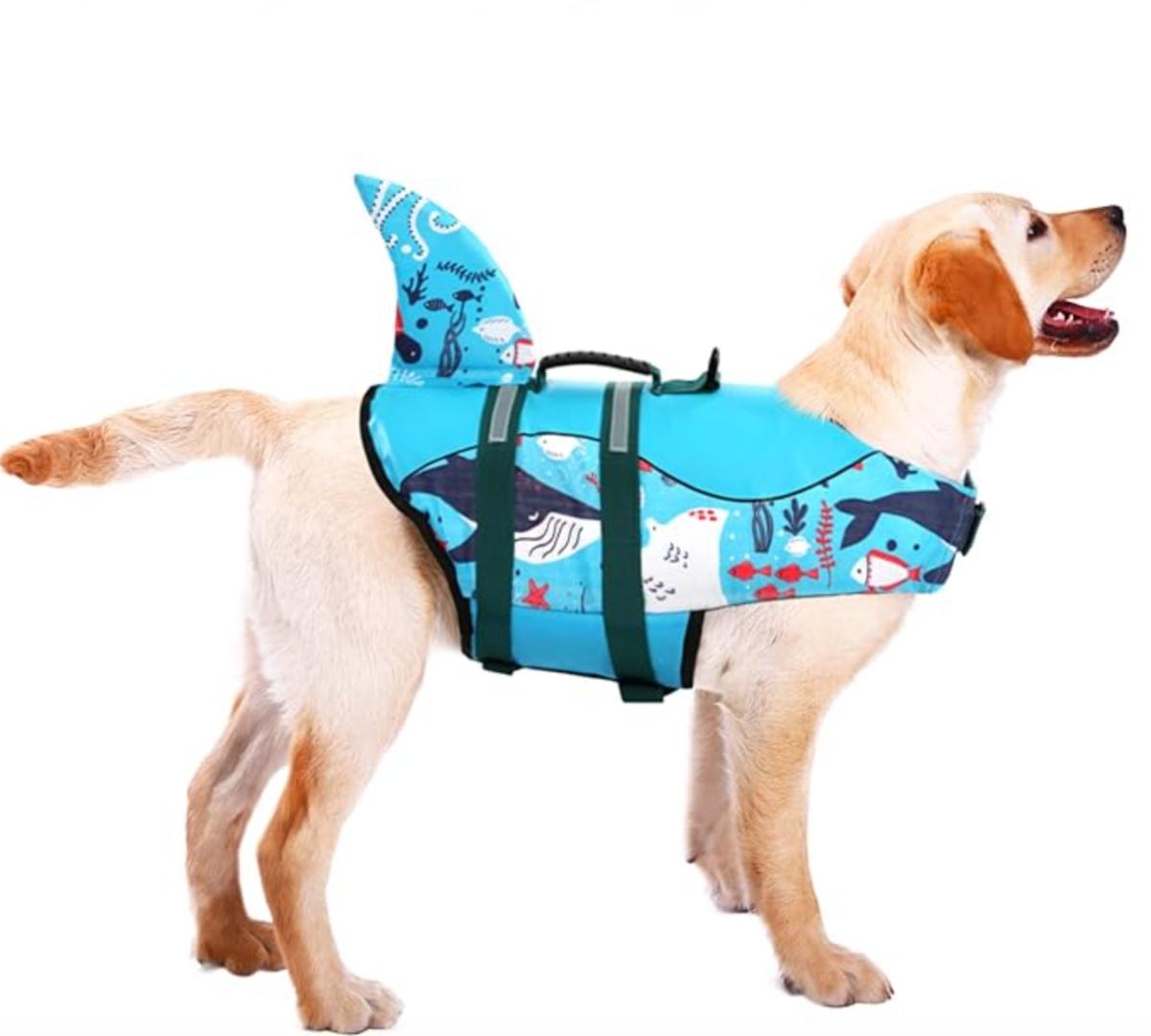 Size Medium Dog Life Jacket Pet Life Safety Vest for Swimming Boating, Dog Shark Life Jackets Dog Lifesavers Swimsuits for Pool, Dog Water Floatation Vest