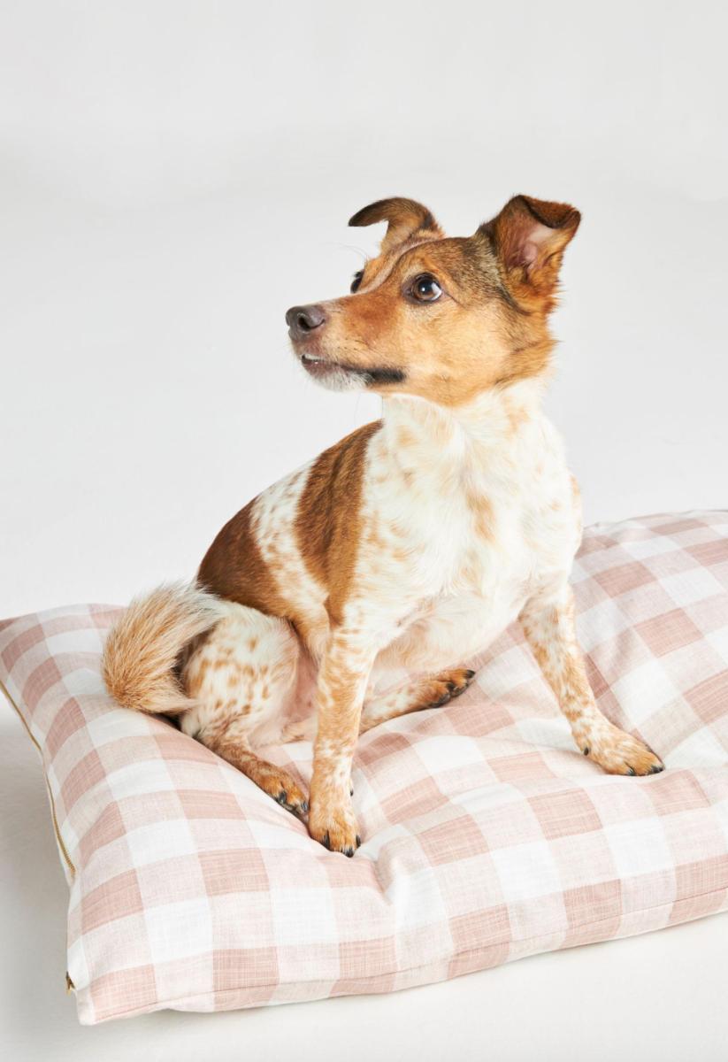 Size Medium The Foggy Dog Plush Dog Bed in Muted Blush Gingham Durable Cotton Machine Washable