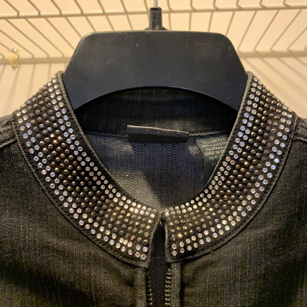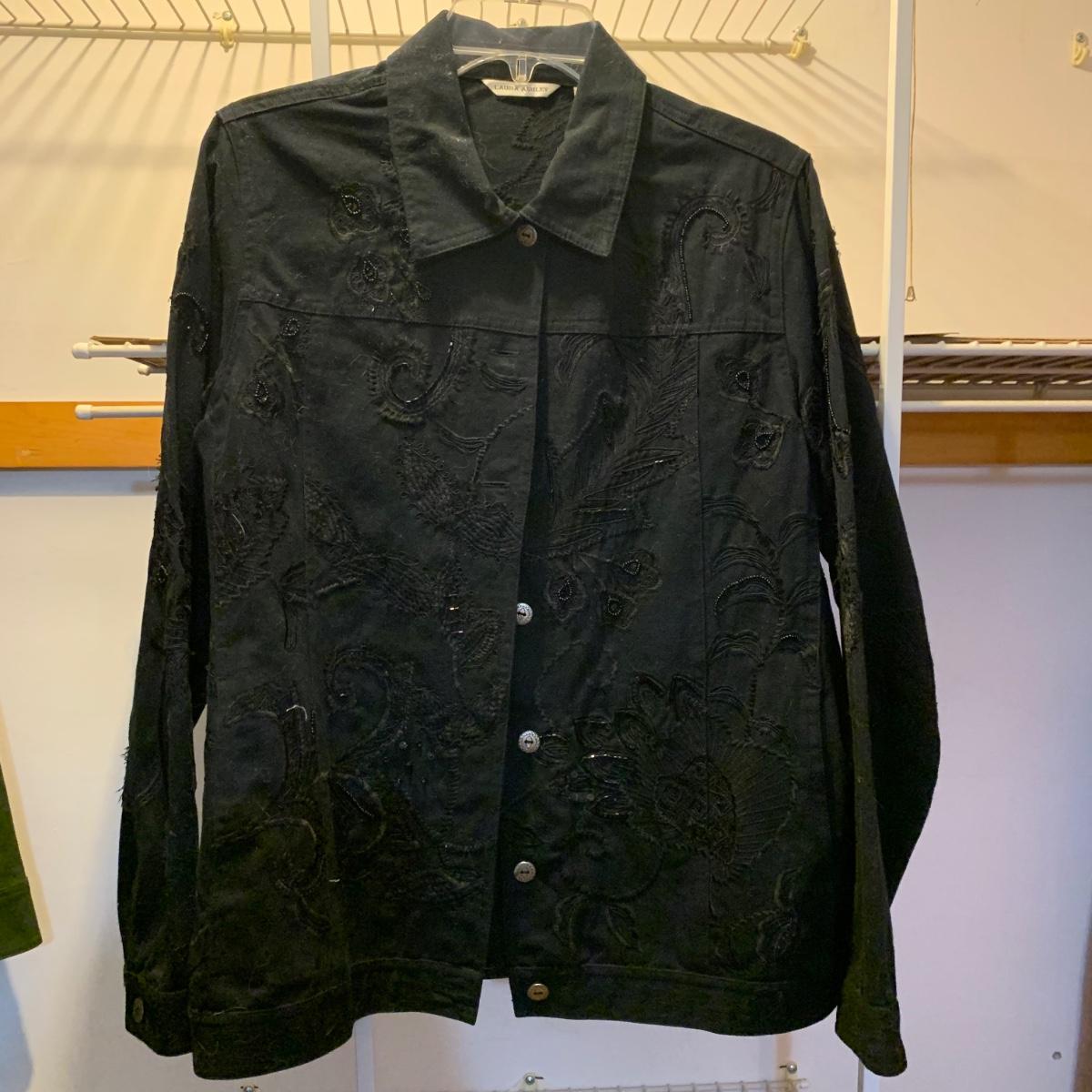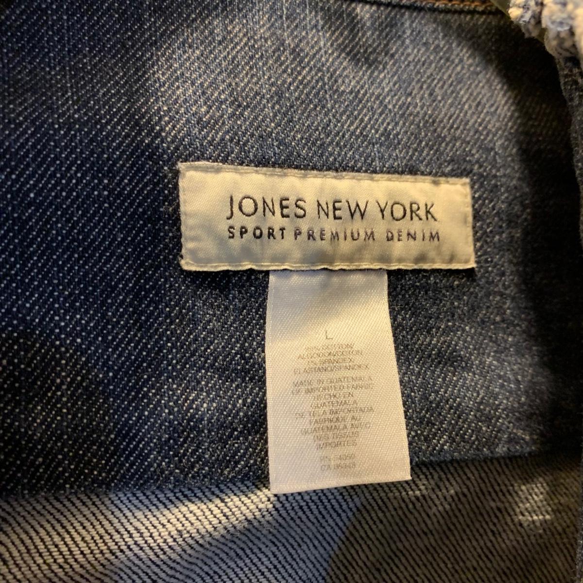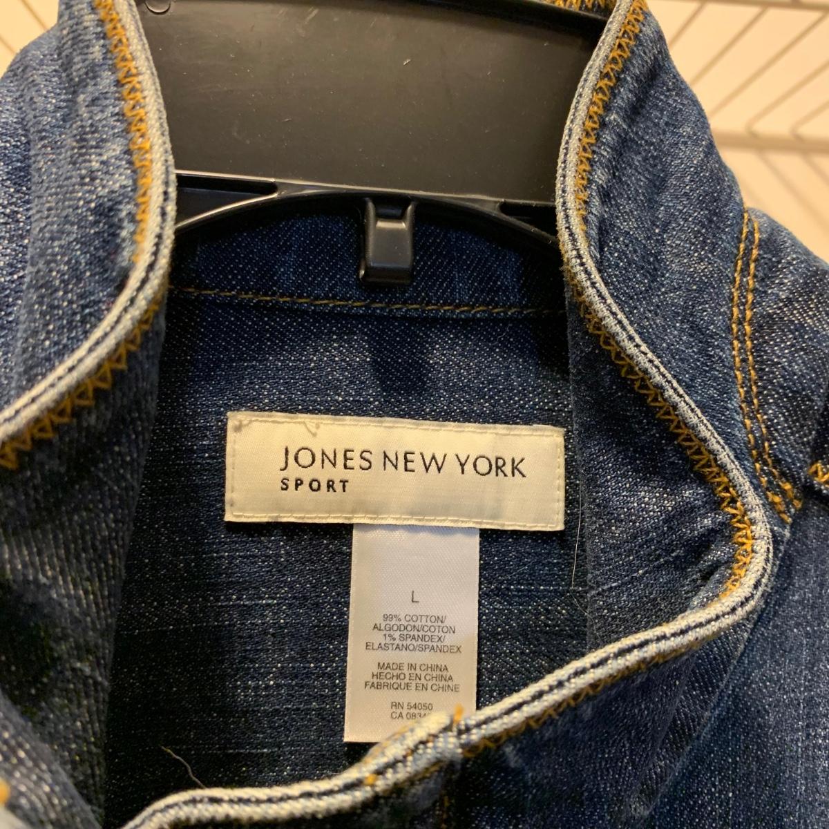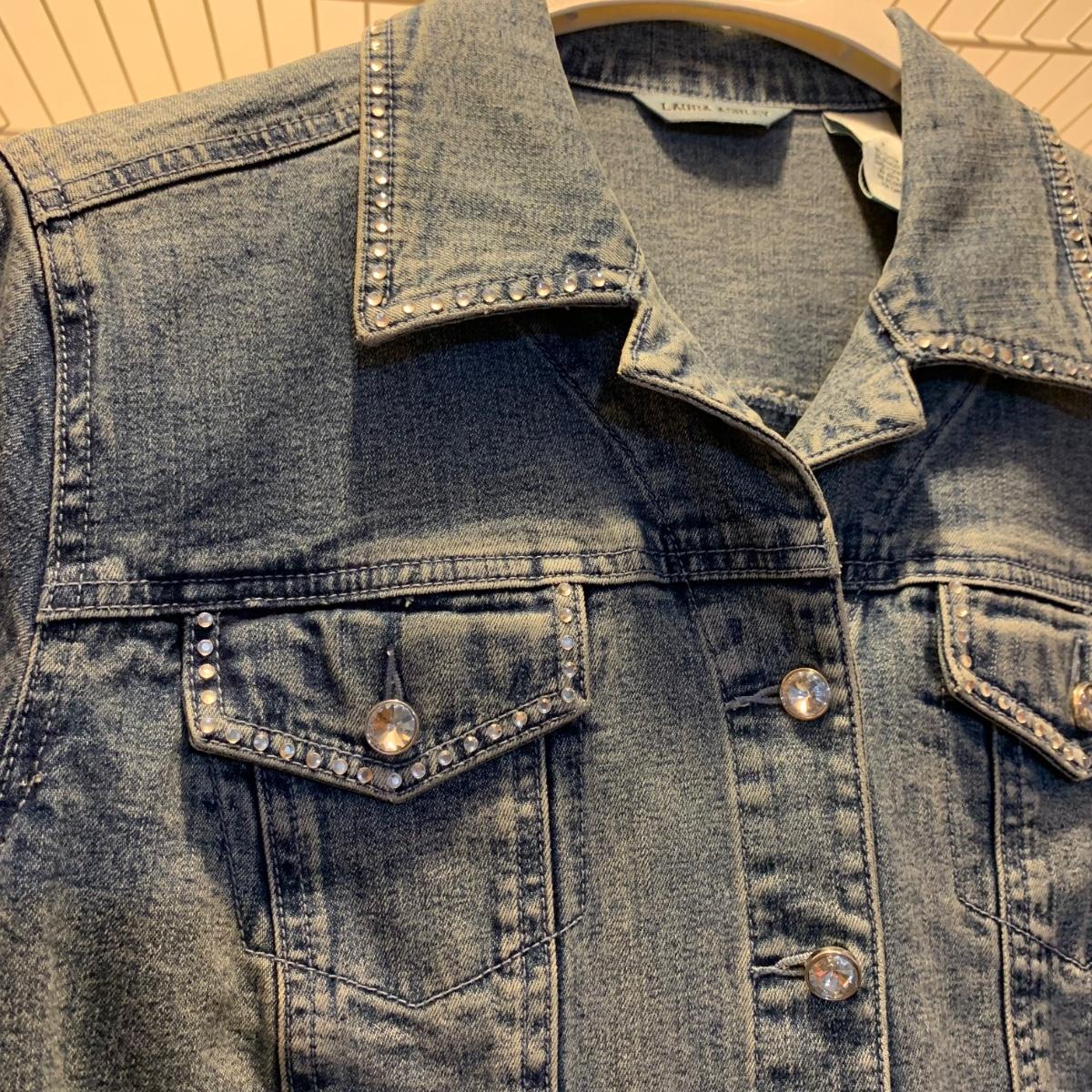 Thirteen denim shirts and jackets. Most have some bling and most are size L, with a couple size M. Most of the items are in very good condition. There’s some light staining on the sequined Jones New York jacket and what appears to be a small paint stain on the dark blue Jones New York jacket. Please see photos for all sizes and brand names.