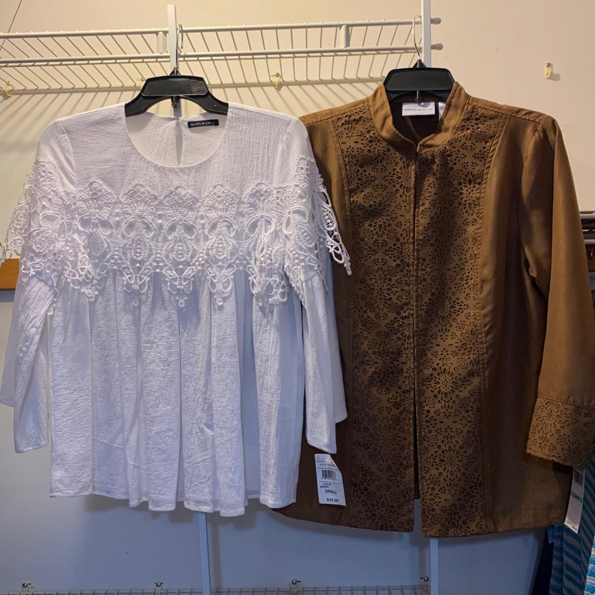 35+ ladies tops, size S. Includes a wide variety from casual to business casual to clothing for a night on the town! All items appear to be in very good condition. Multiple garments are brand new with their original tags still attached. Please see photos for brand names.