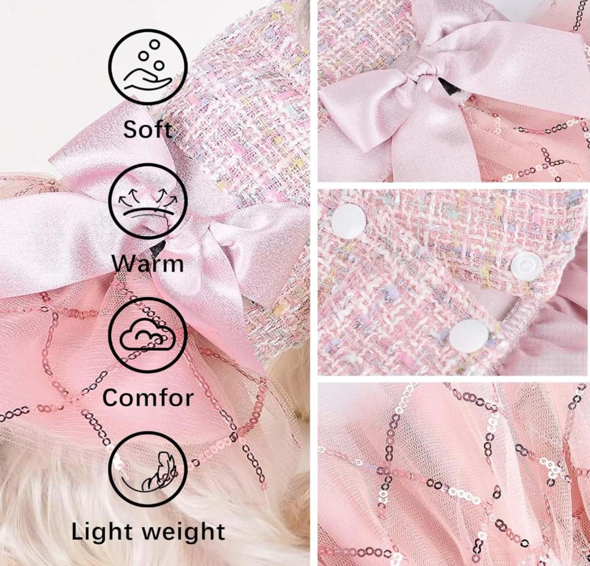 Size Small Pink Tulle Dog Dress w/Pink Sequin Tulle Skirt & Pink Bow