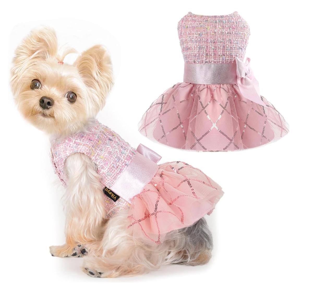 Size Small Pink Tulle Dog Dress w/Pink Sequin Tulle Skirt & Pink Bow