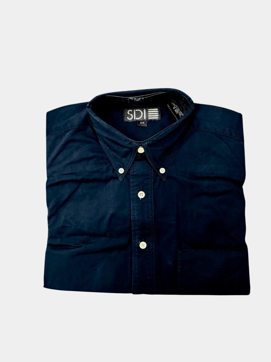 Size Small SDI Men’s Navy Blue Button-Down Shirt 100% Cotton Hong Kong Made Pearl Buttons