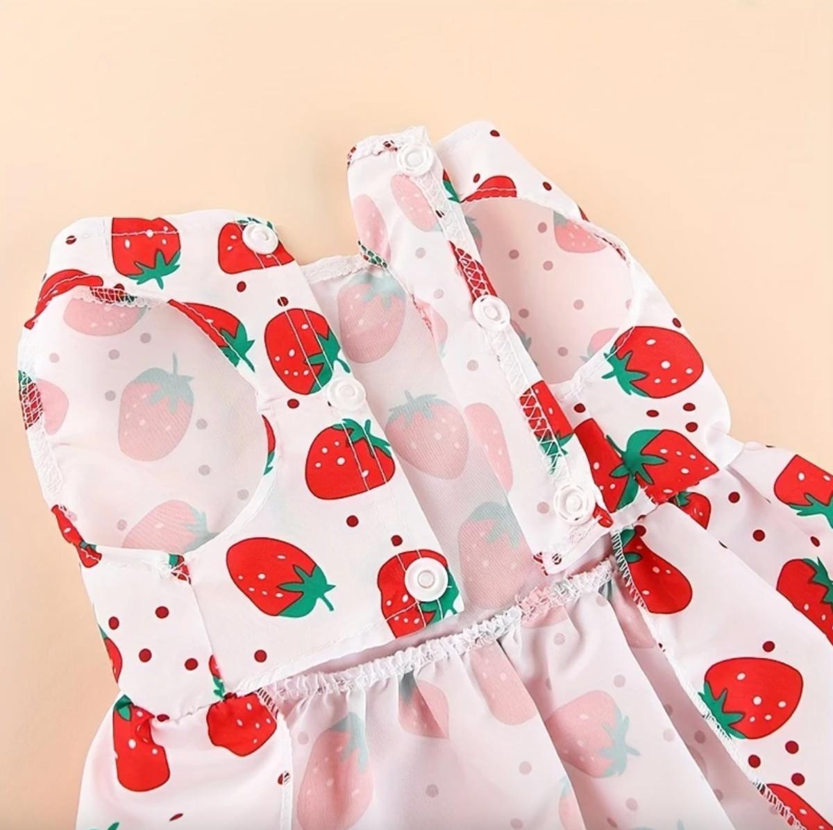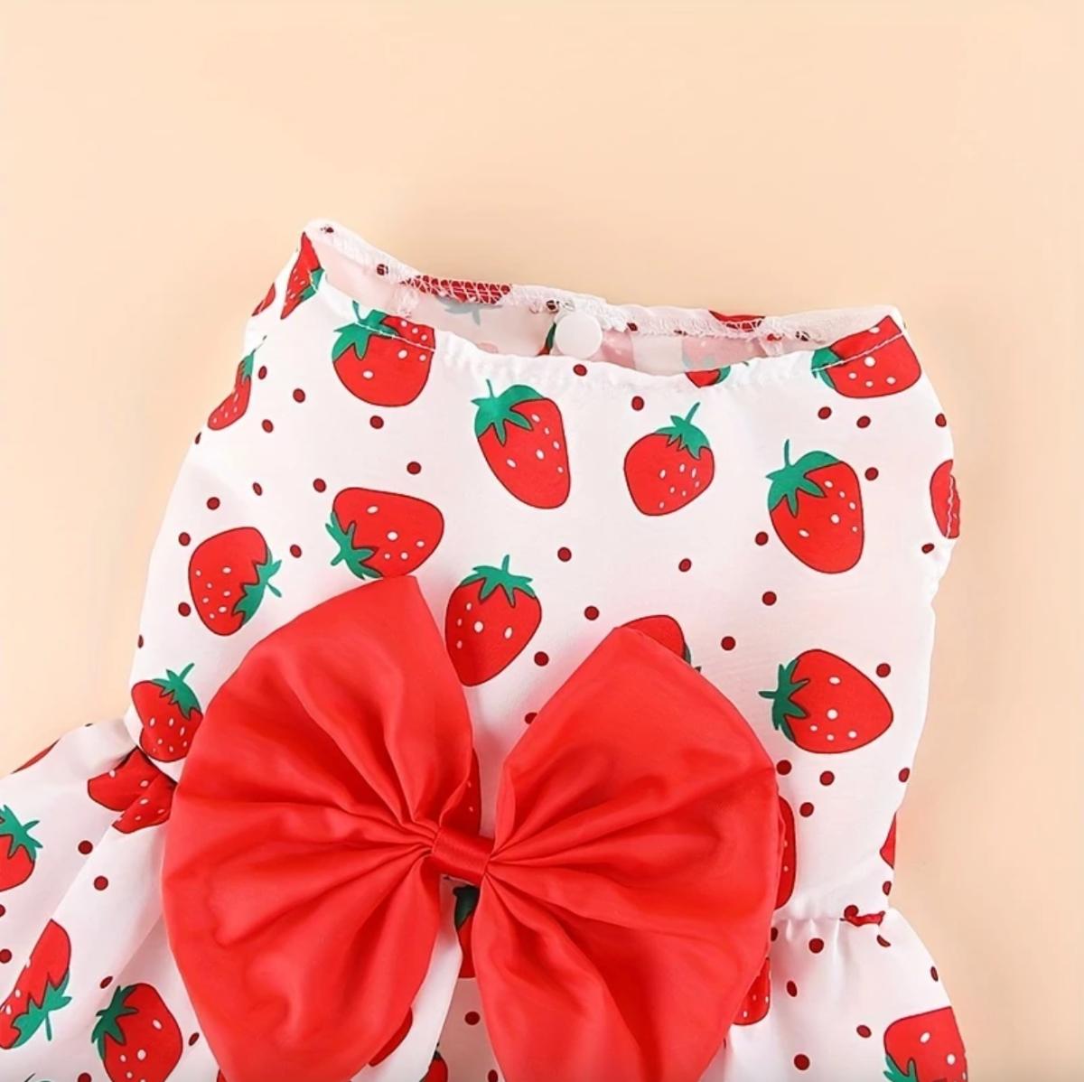 Size Small - Strawberry Pattern Dog or Cat Dress for Small to Medium Dogs - Red Bow Detail & Easy Snap Closure, Dog Dress