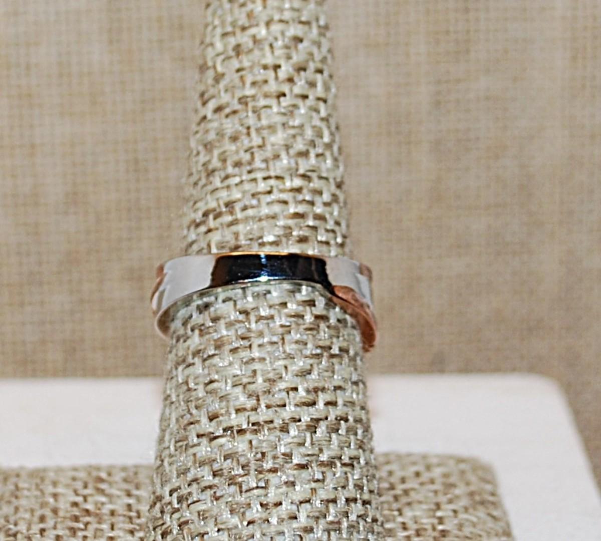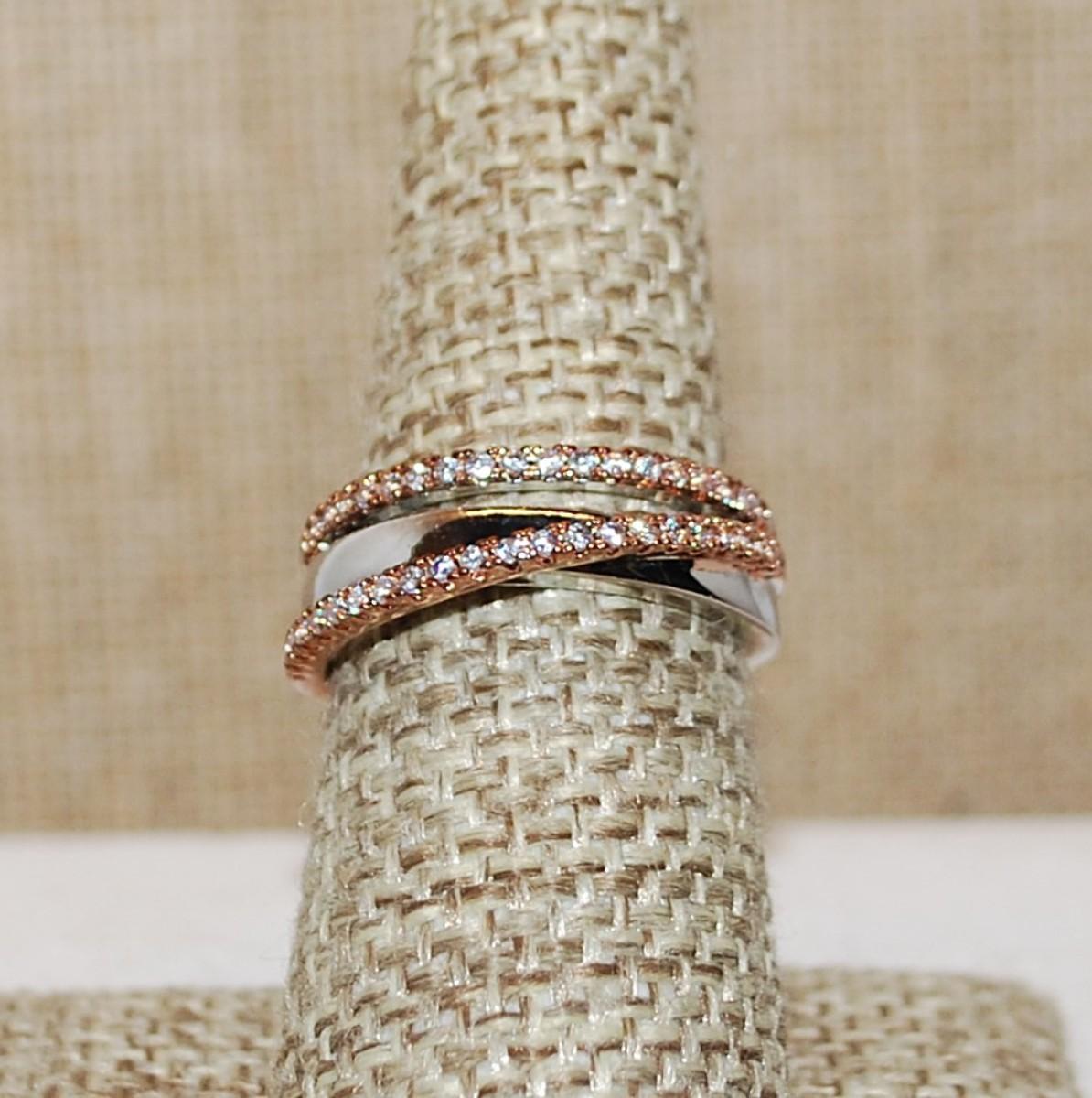 Size7½ Marked .925 Double Rows ROSE GOLD Ring & Stone Accents with Criss-Cross Silver Tone Band (4.2g)