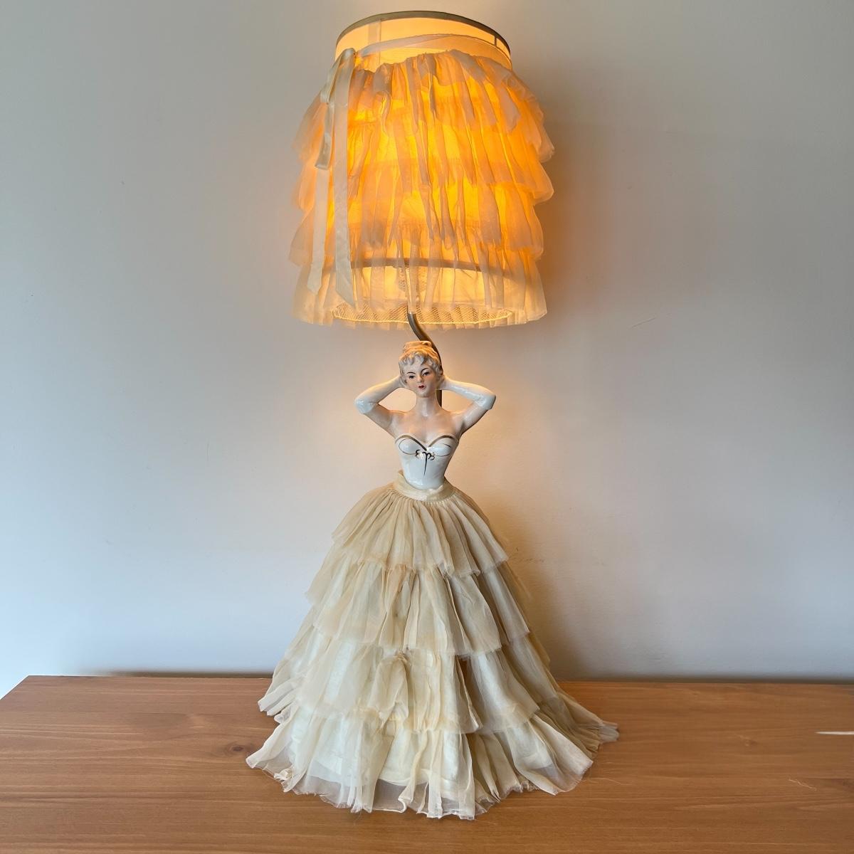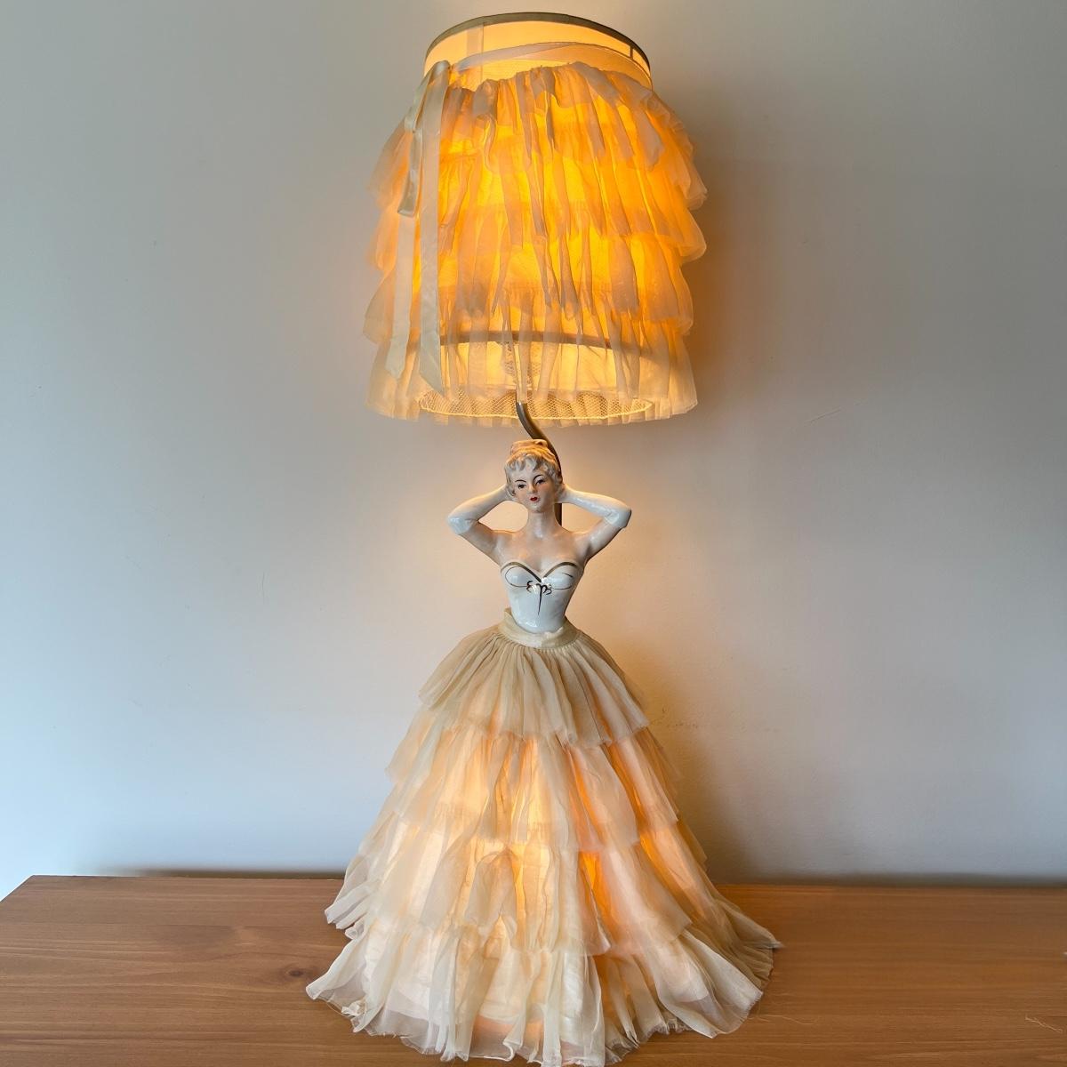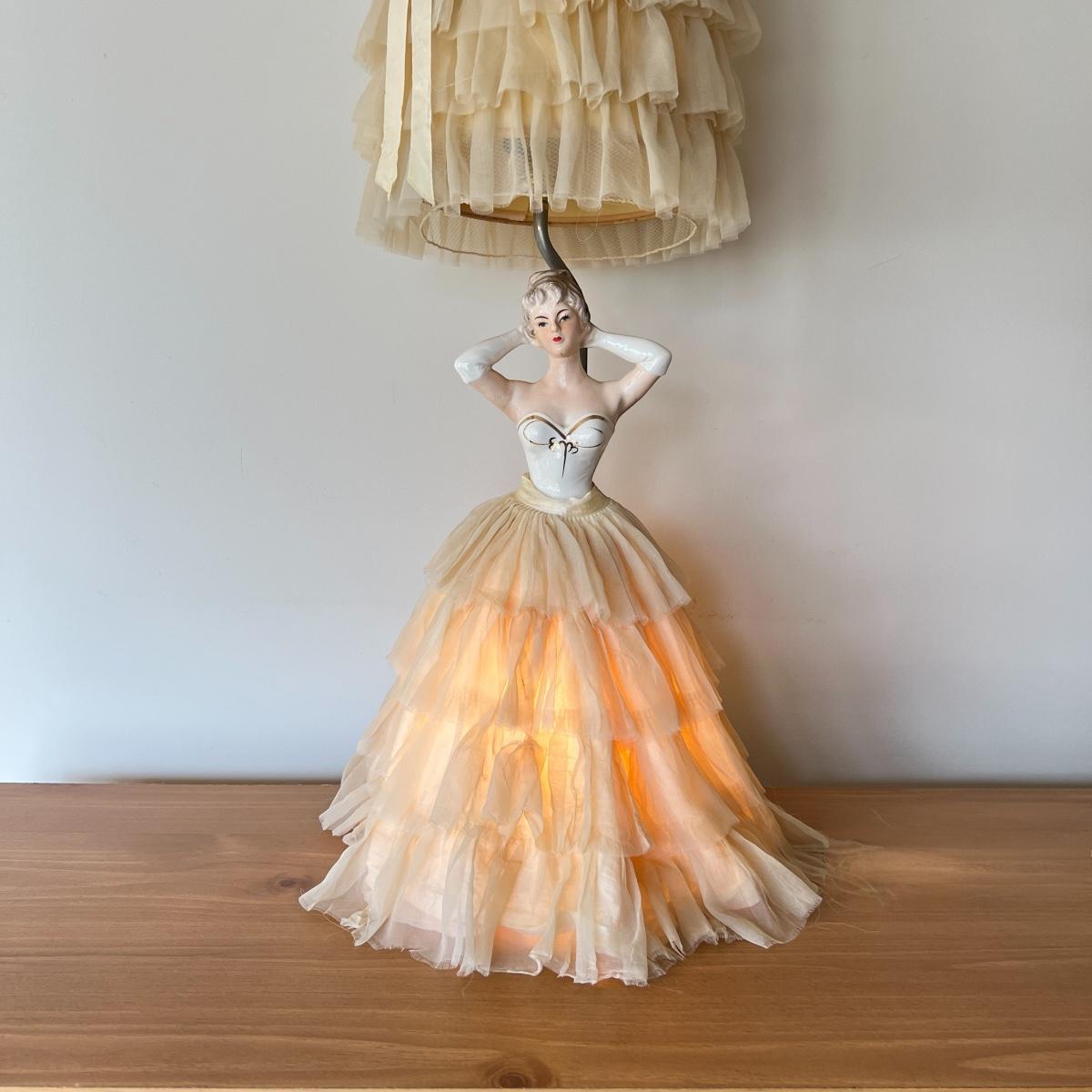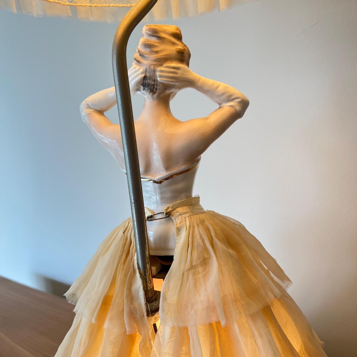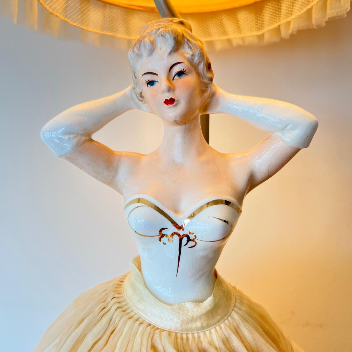 Vintage Porcelain 1950's 3-Way Figurine Table Lamp