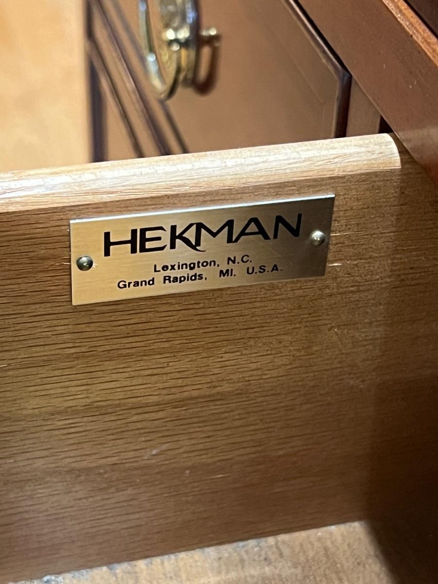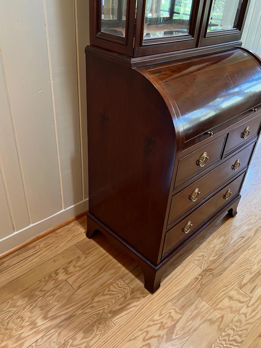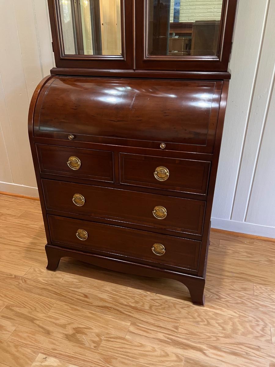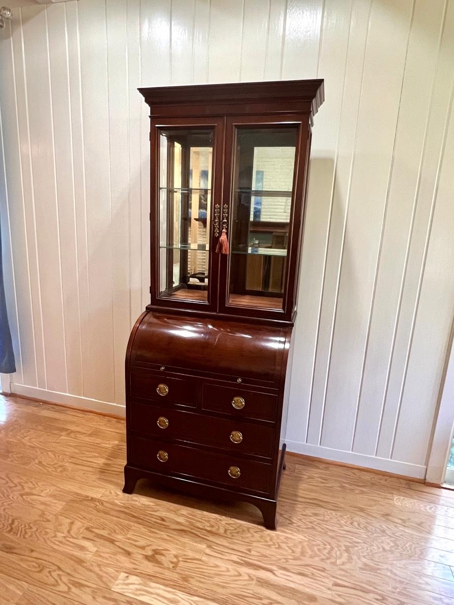HEKMAN ~ Lighted Mirrored Inlaid Mahogany Roll-Top Secretary Desk
