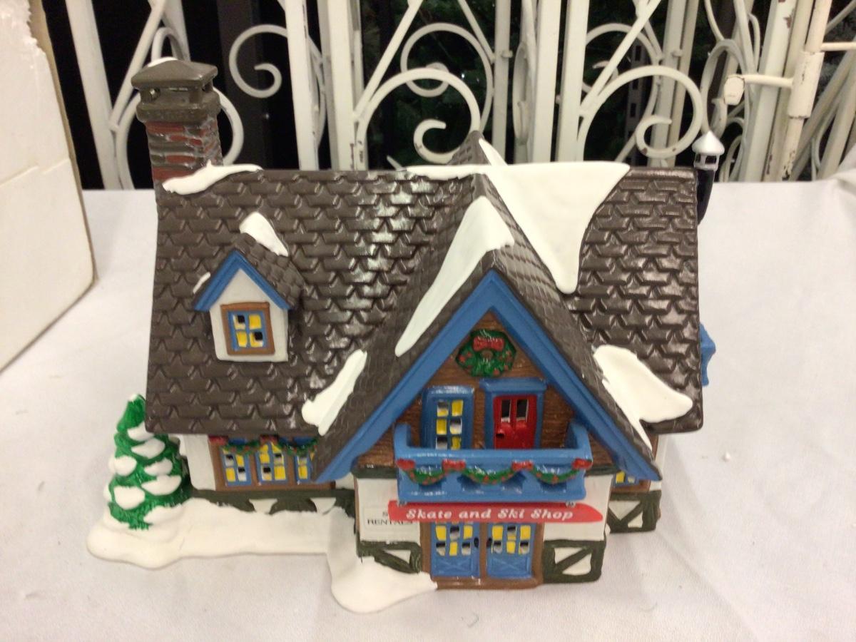 You get Skate and Ski Shop Dept. 56 Snow Village with box that has damage and light.