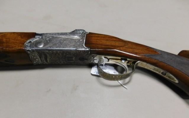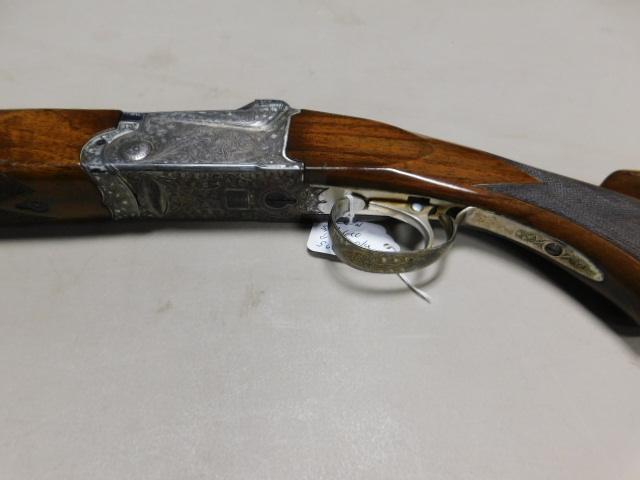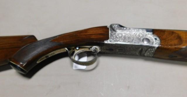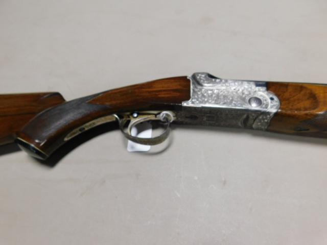 SKB 600 28 ga Over/Under with Walnut Stock has single trigger with pistol grip stock checkered grip and forearm. All moving parts seem tight and now wobble. Silver furniture with scrolling. FFL required