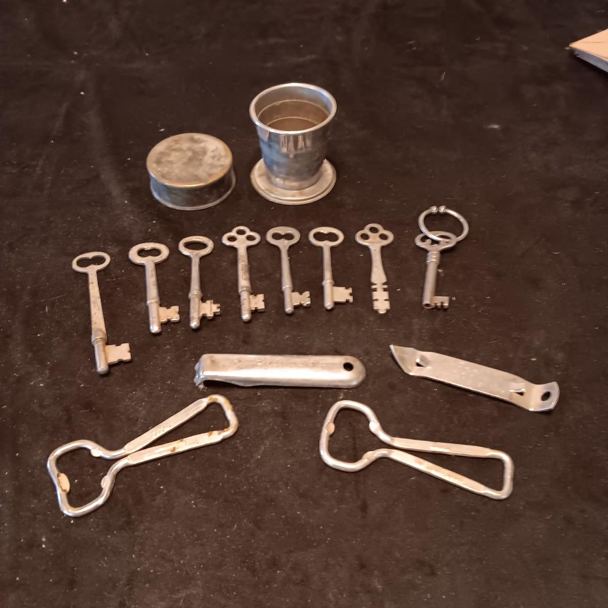 SKELETON KEYS, BOTTLE OPENERS AND COLLAPSIBLE TIN CUP