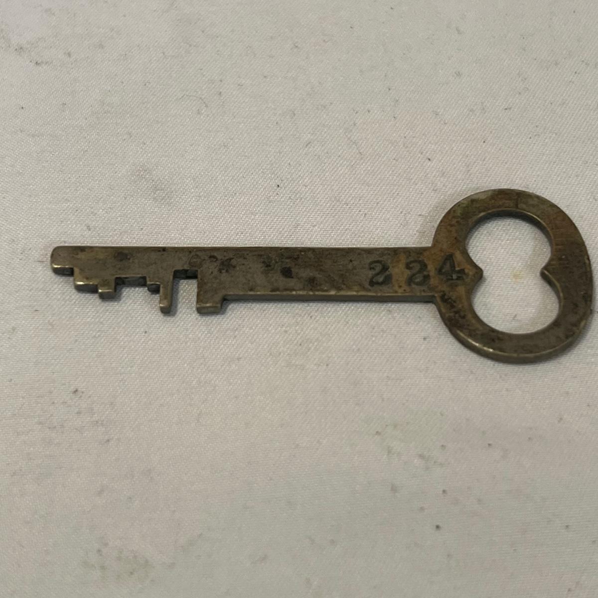 Brass keys measure 1” x 3”H.