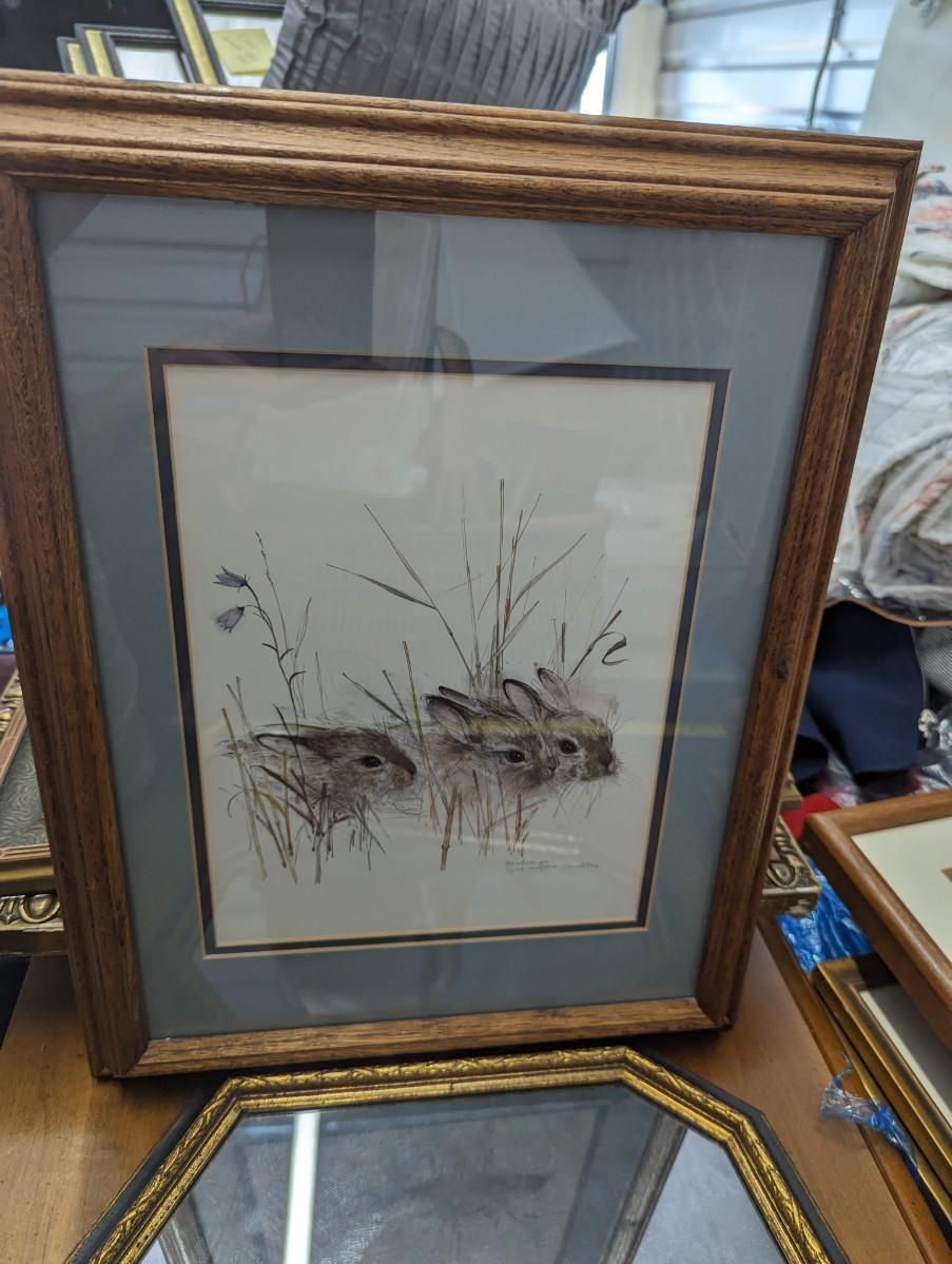"Harekelinger Hares Rabbits watercolor print. Artist is Mads Stage.