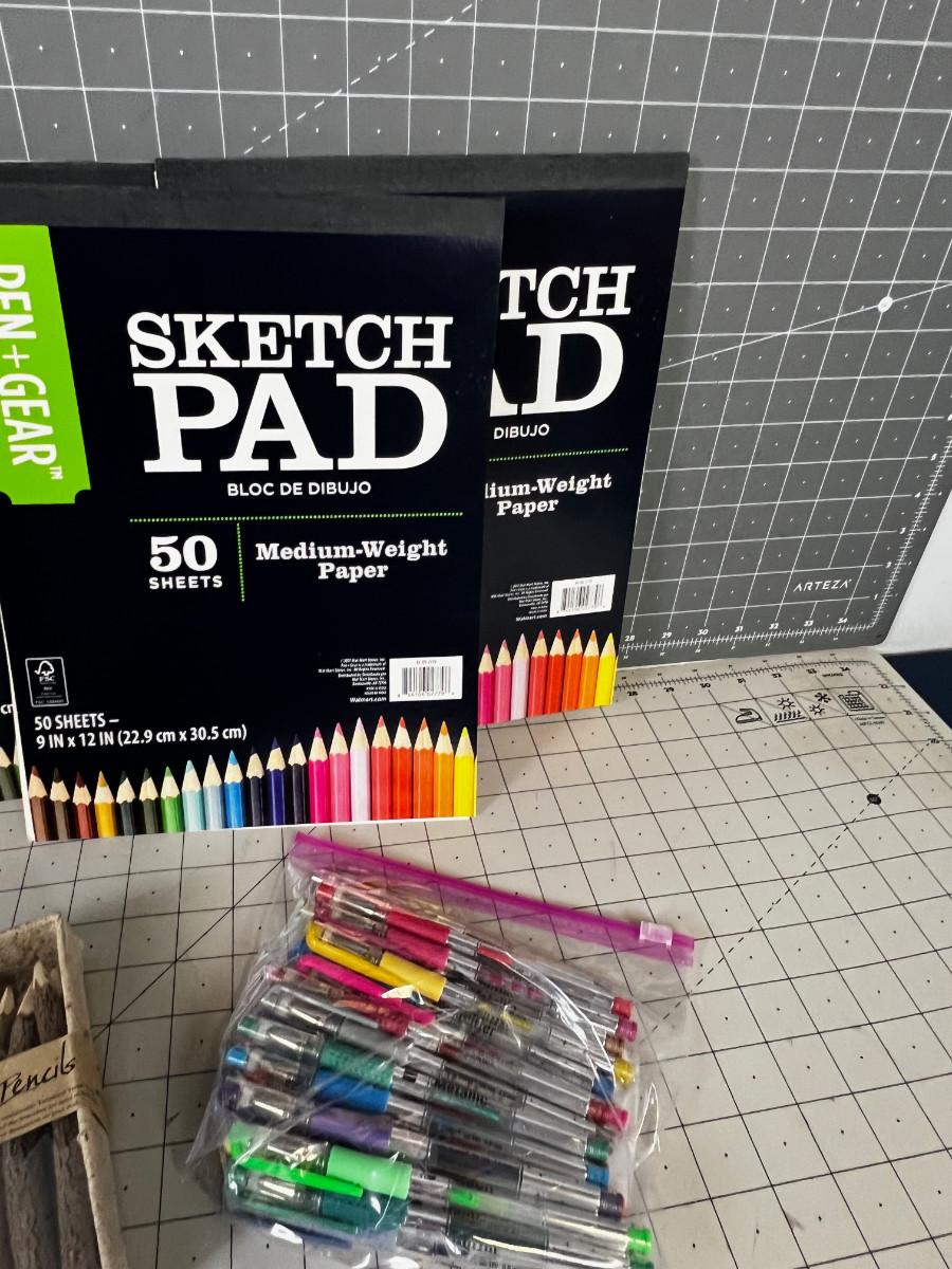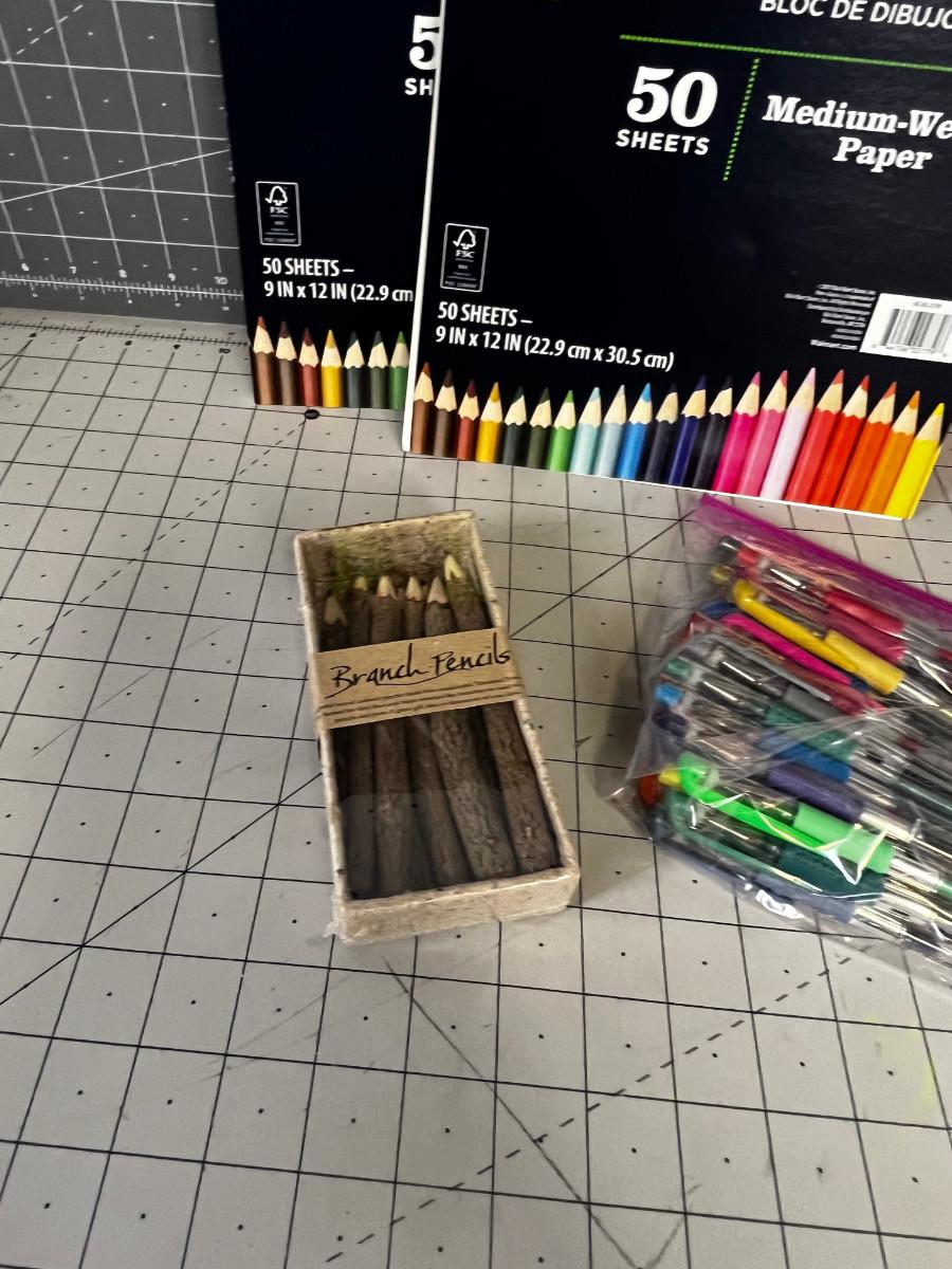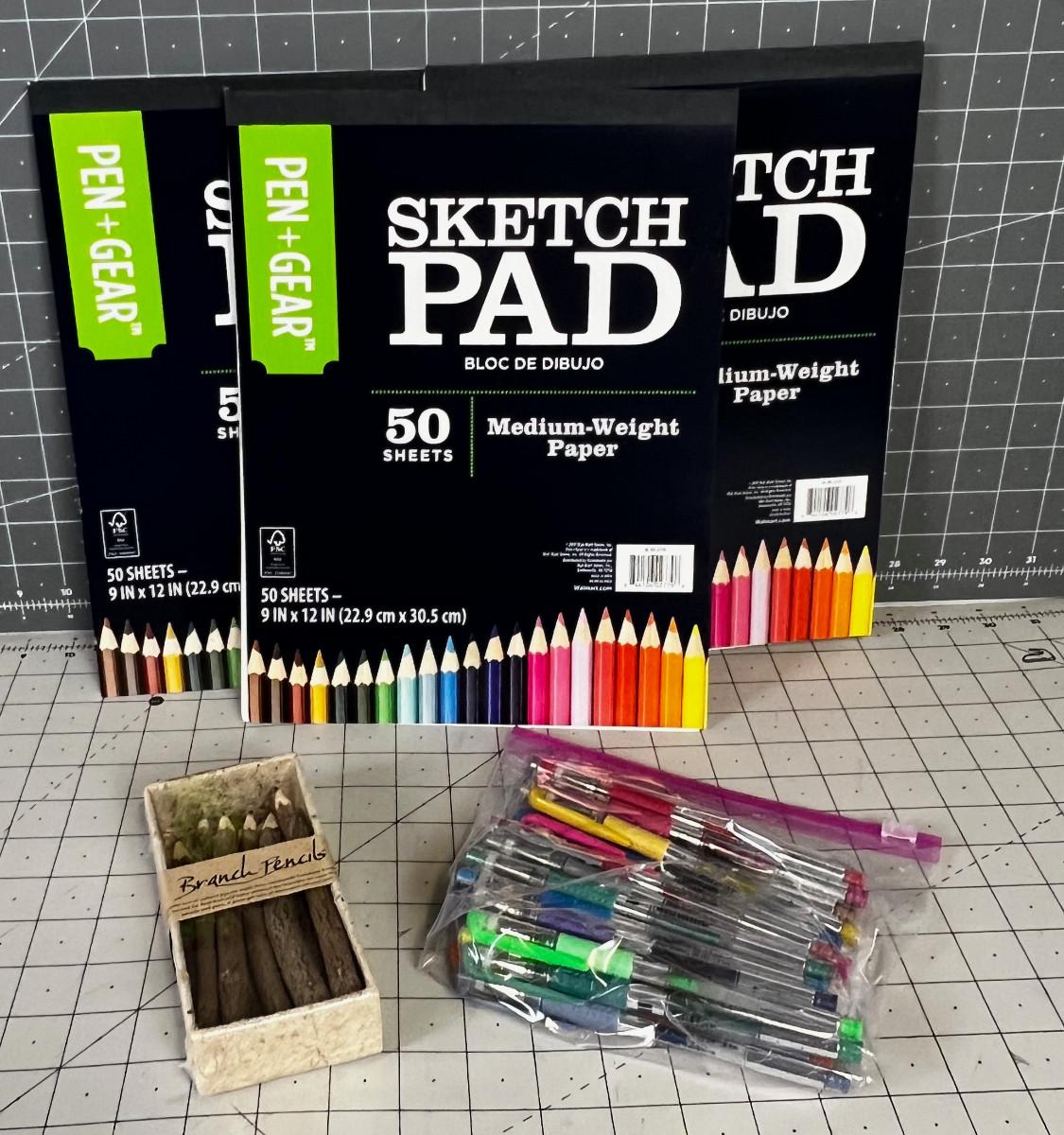Sketch Pads, Twig Pencils, and Colored Pens