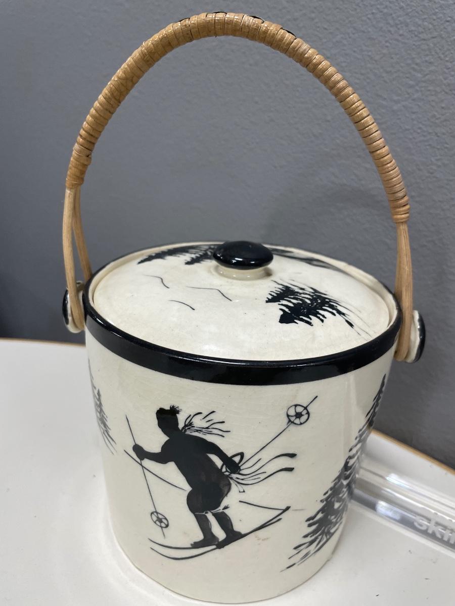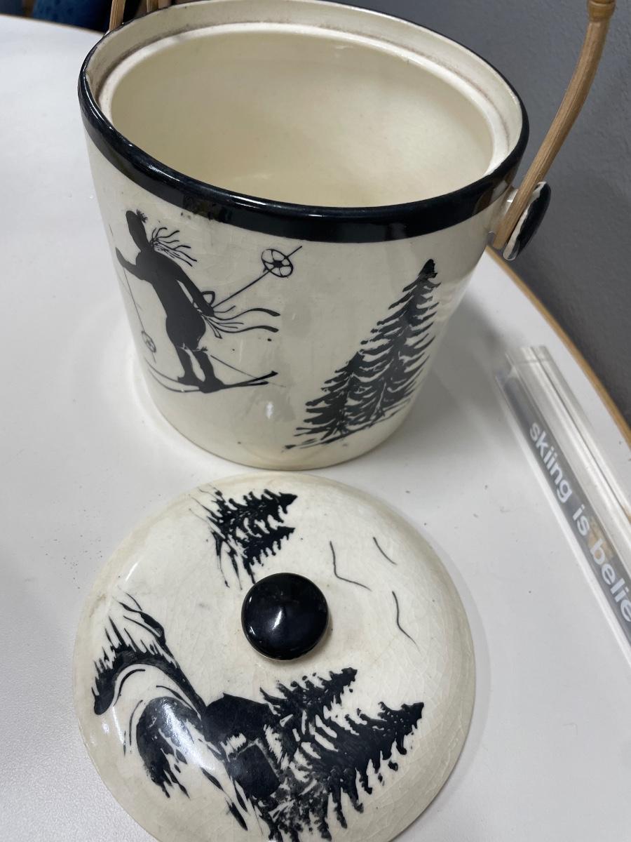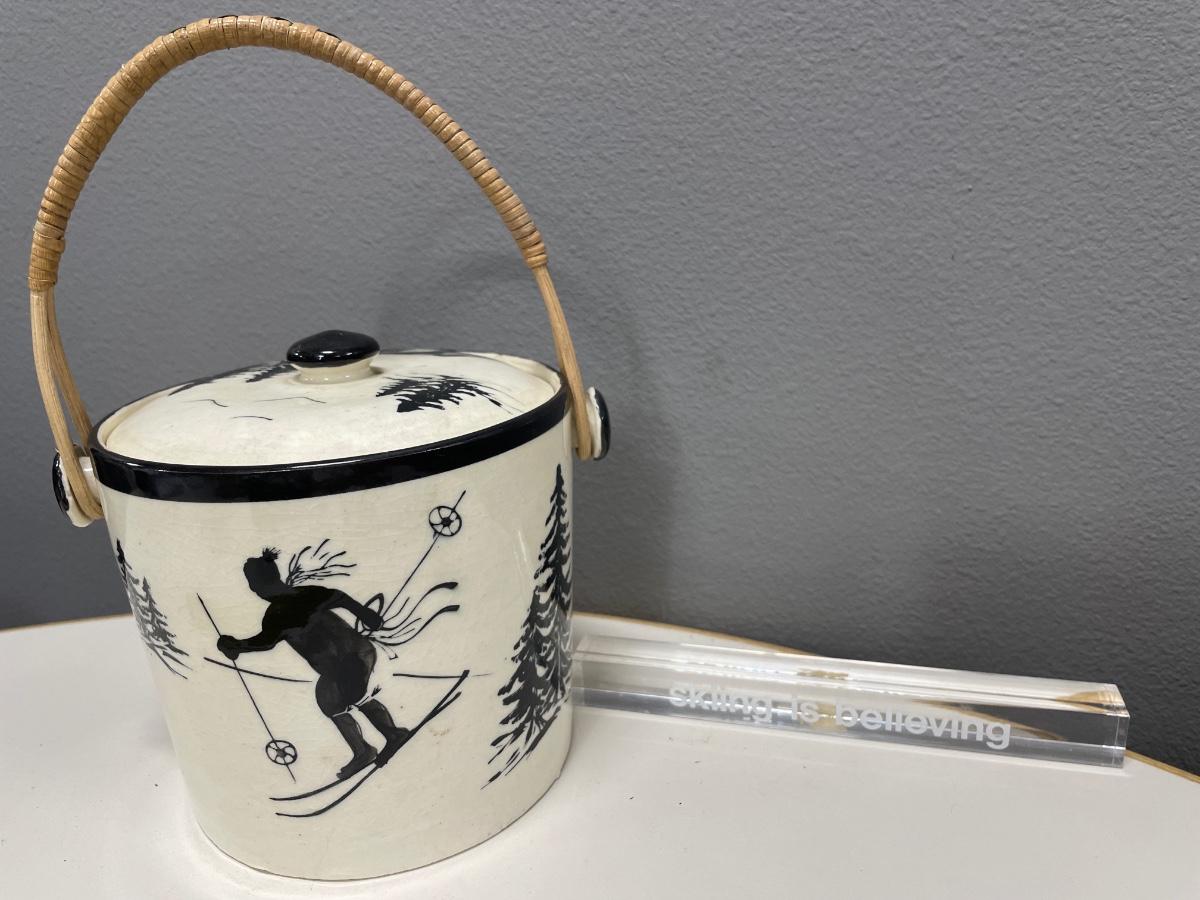 Skiing is Believing acrylic sign & pottery