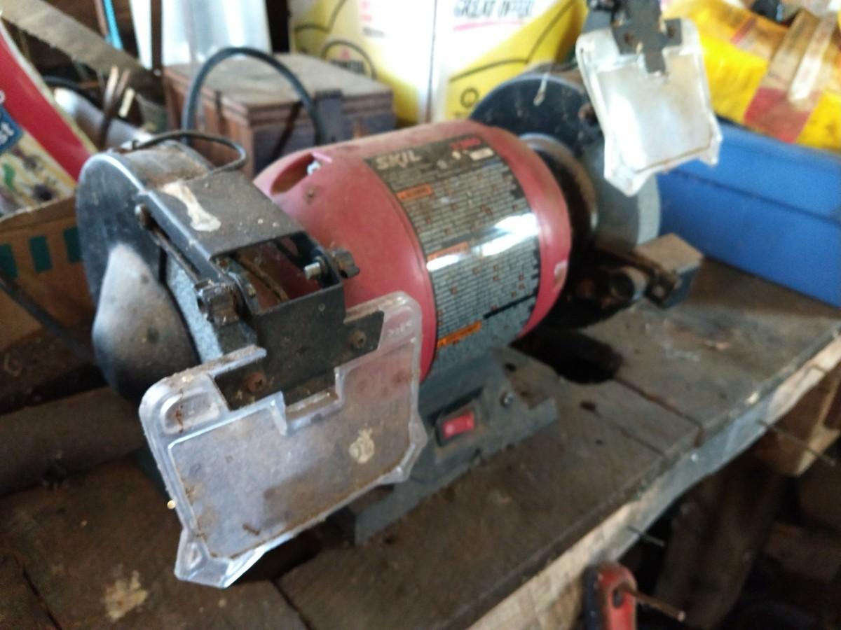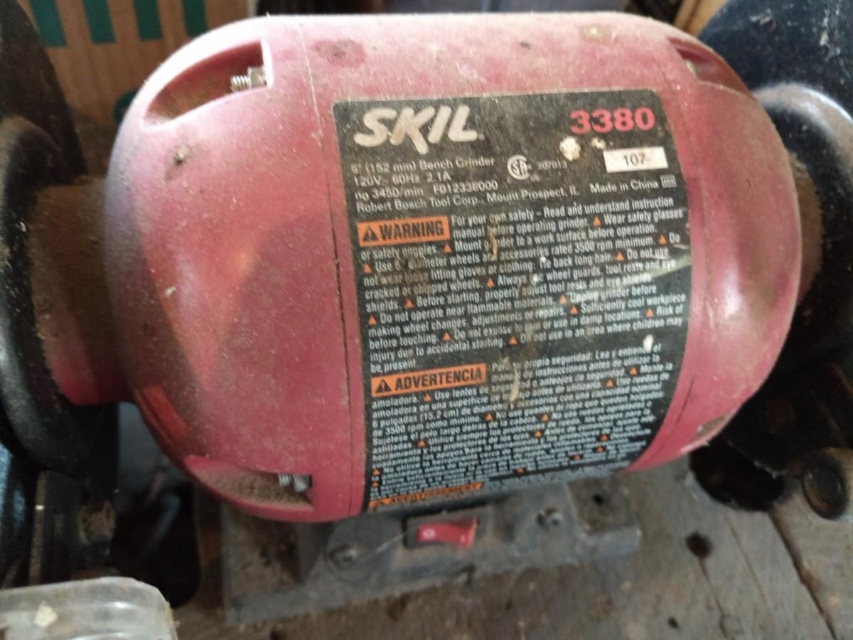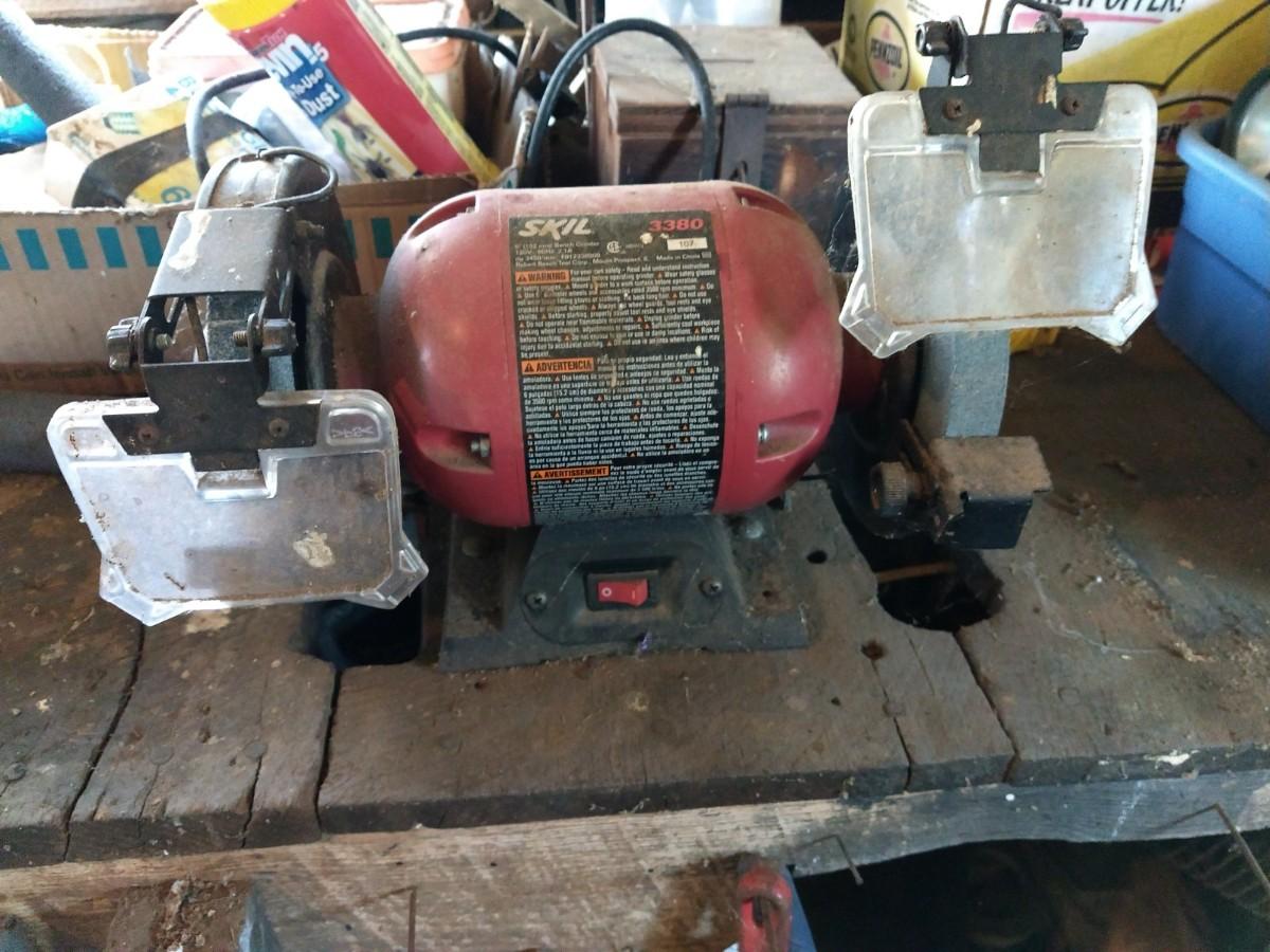 Skil 3380 Double Wheel Bench Grinder bring tools to remove from bench. Turns on
