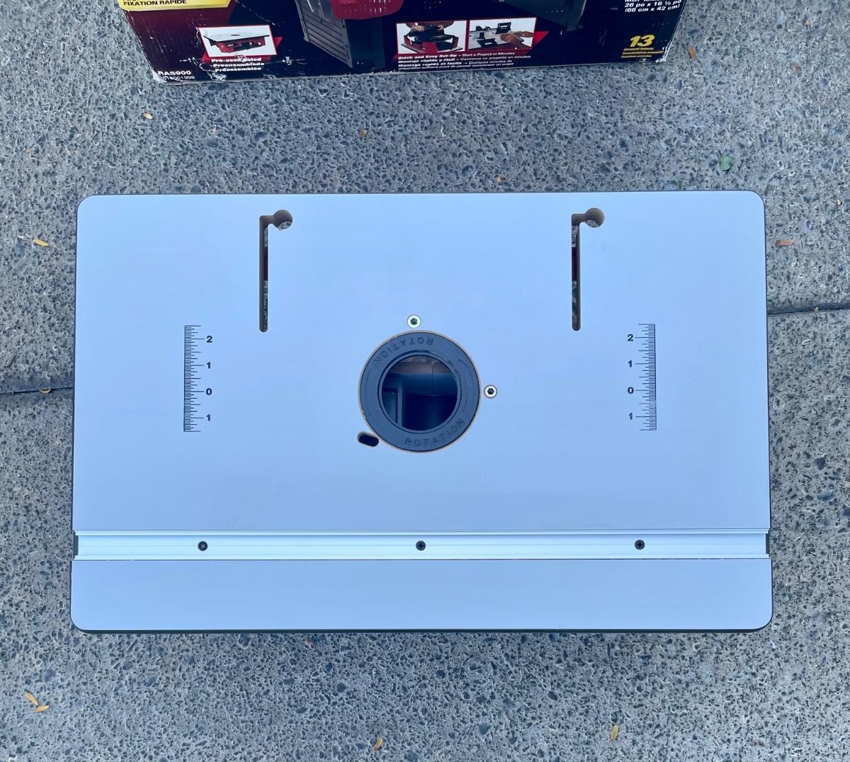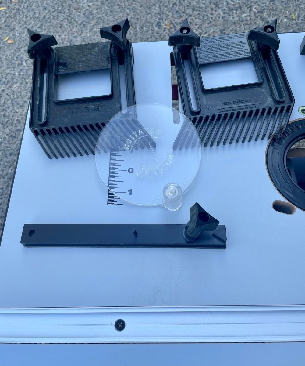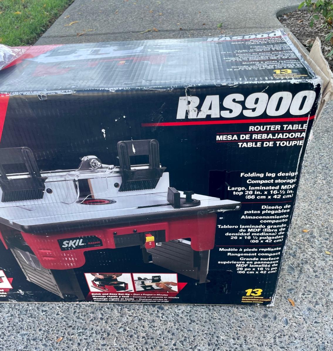 Router table with folding legs for easy storage when not in use. 26”x 16” work surface. Includes many accessories such as mitre gauge, feather boards, bit insert rings, and bit height gauge. Excellent, near-new condition.