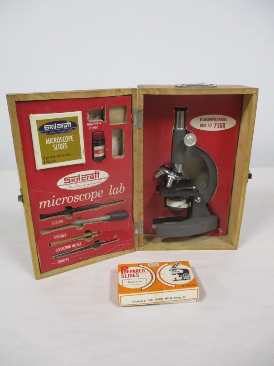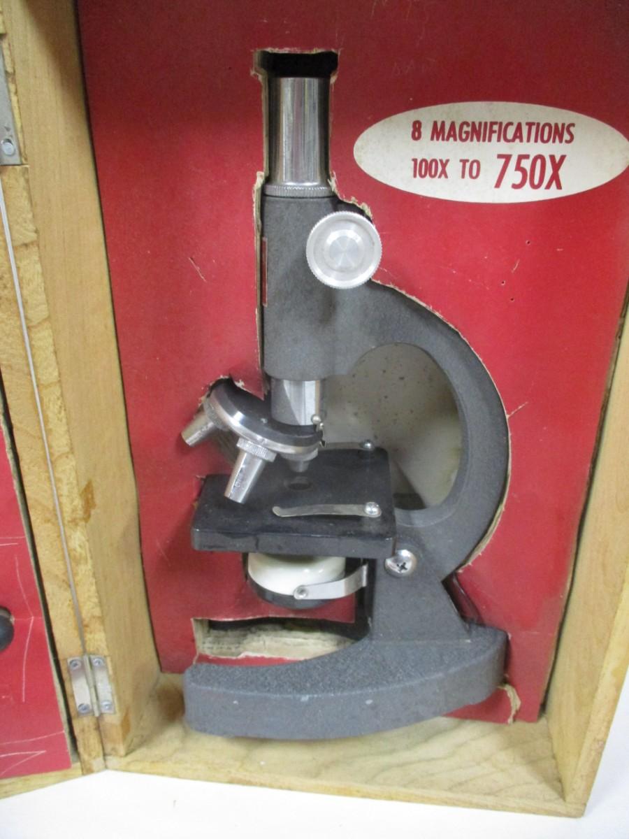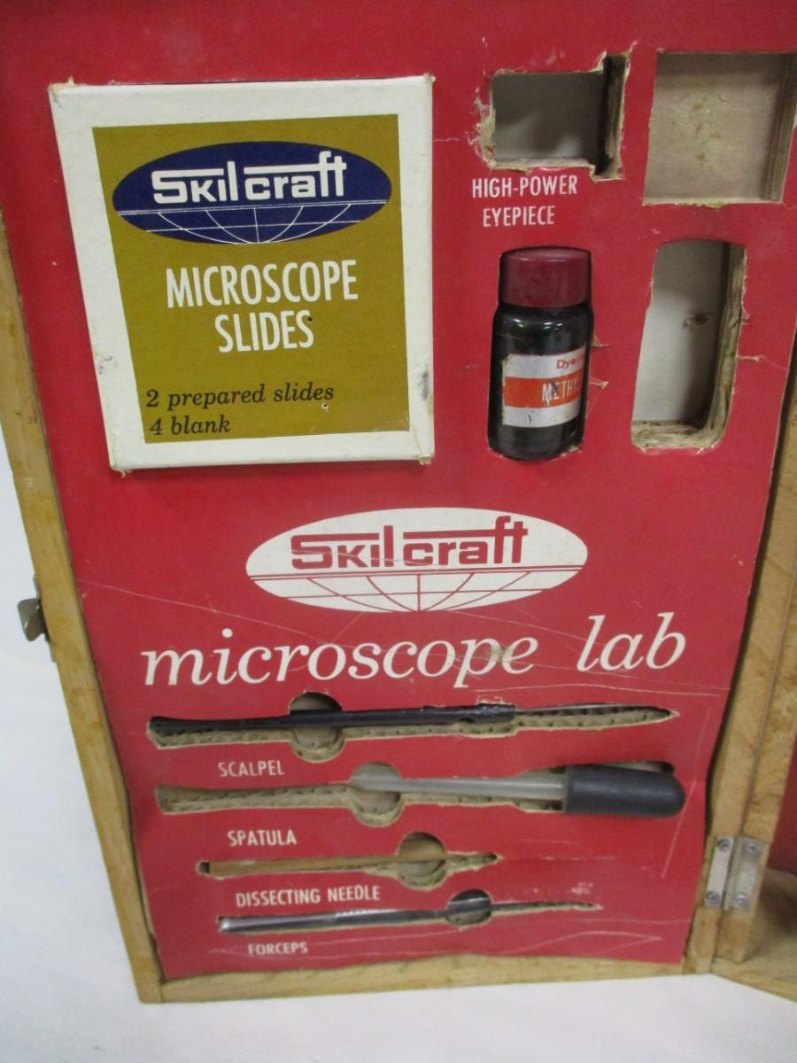 Skilcraft Microscope Lab Microscope and Accessories in Original Wood Case