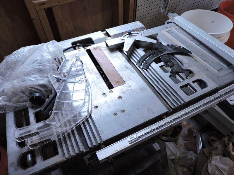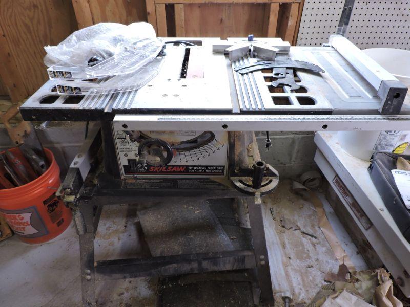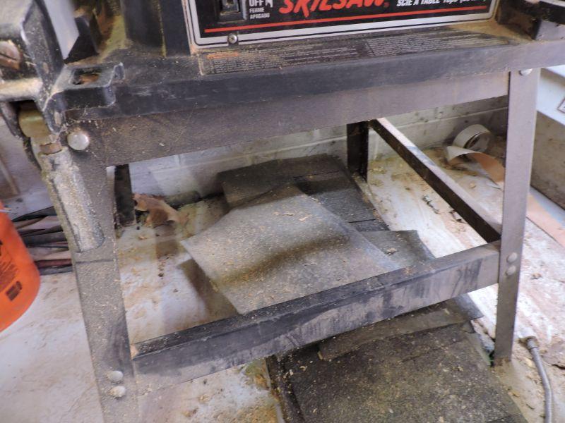 Skilsaw 10" Table Saw. Model 3400. With stand. Please read Terms and Conditions before placing a bid. Pick up is Friday, October 25th between 4 and 7, and Saturday, October 26th between 9 and 1. Please bring boxes, tools, and muscle to help move your items. Props included in photos are not included in listing. All measurements are approximate.