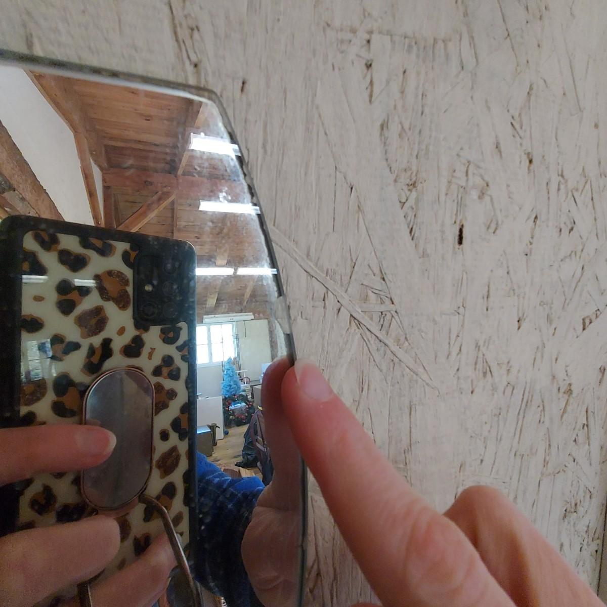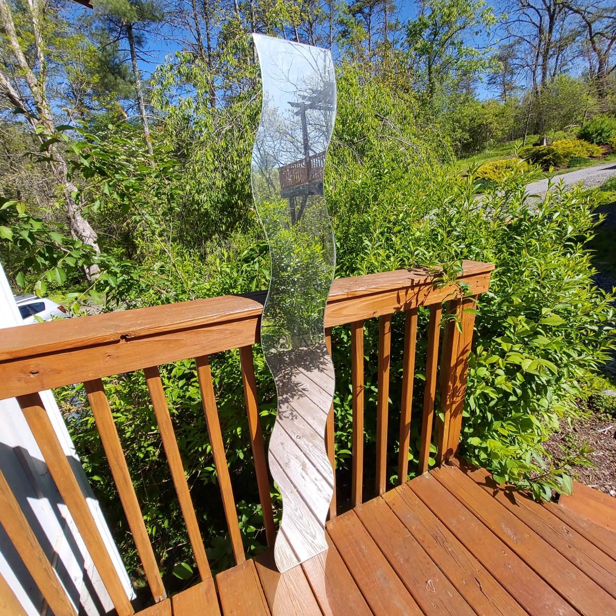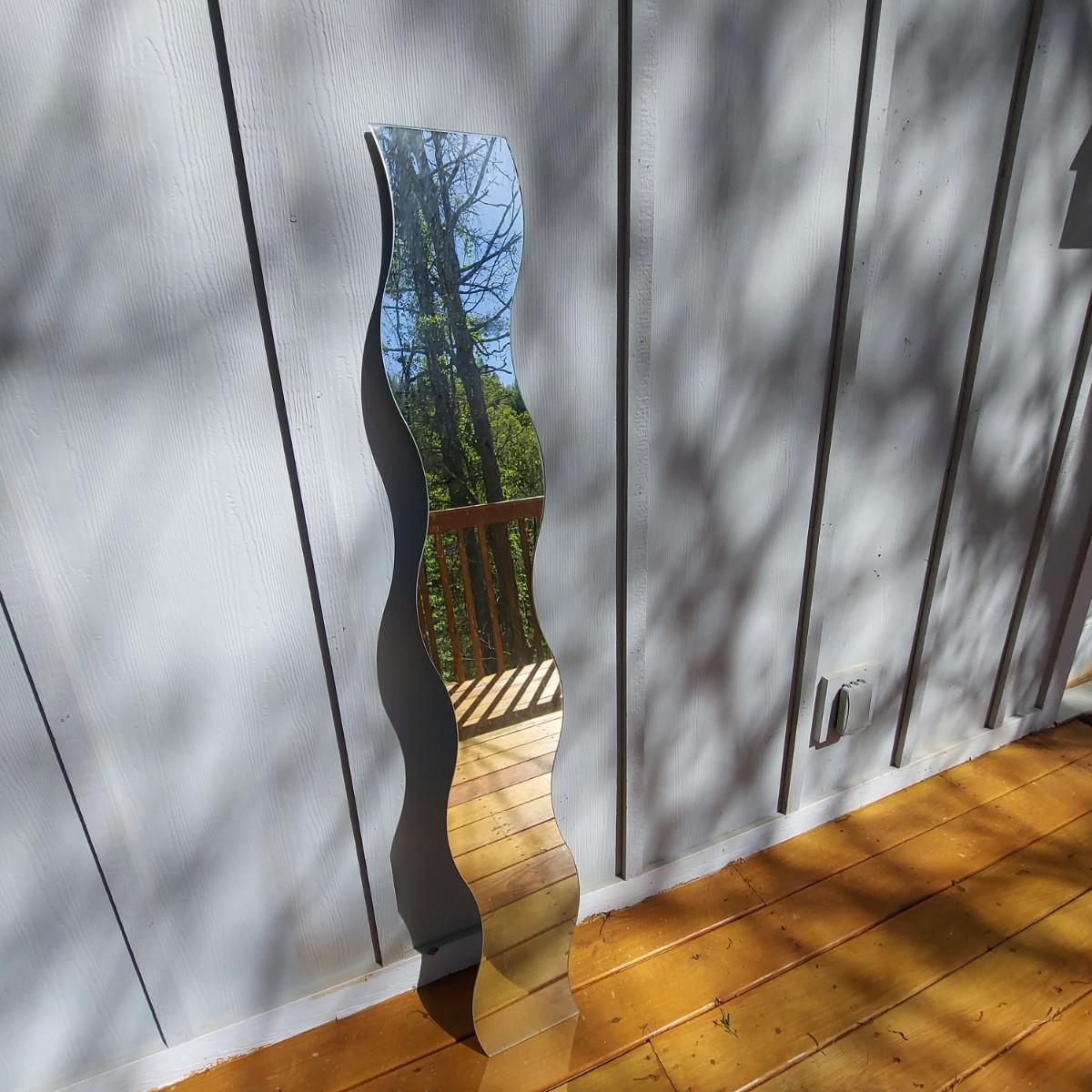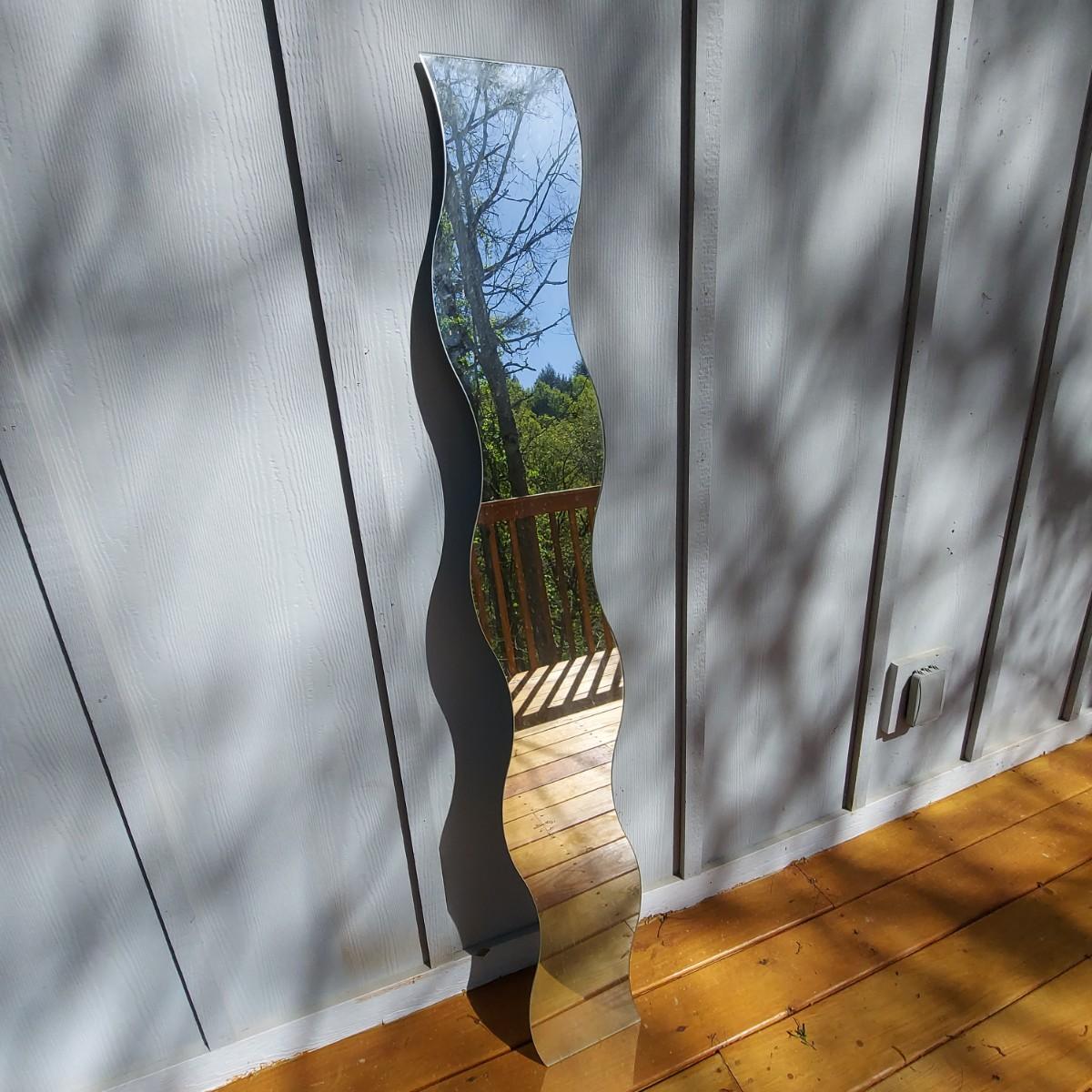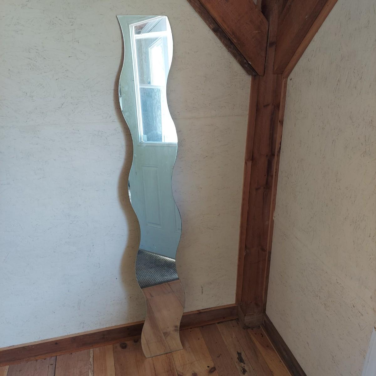 Skinny wavy full length mirror. Has a few edge chips. There is some hardware taped to the back. Measures approximately 10 x 63"H. Local Pickup Only.