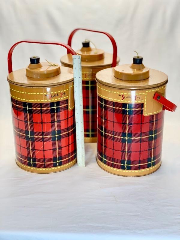 (3) VINTAGE BEER SODA SKOTCH PLAID METAL PICNIC COOLER 1 GALLON JUG.. MEASURES APPROX 12 HIGH“🦆 7 1/2 ACROSS BOTTOM.. HAS SCRATCHES/PAINT LOSS/AGE DISCOLORATION/FEW DINGS“🦆 GLASS INSERT ALL GOOD“🦆“🦆“🦆“🦆 PLEASE VIEW PHOTOS FOR CONDITION. Local pickup only.