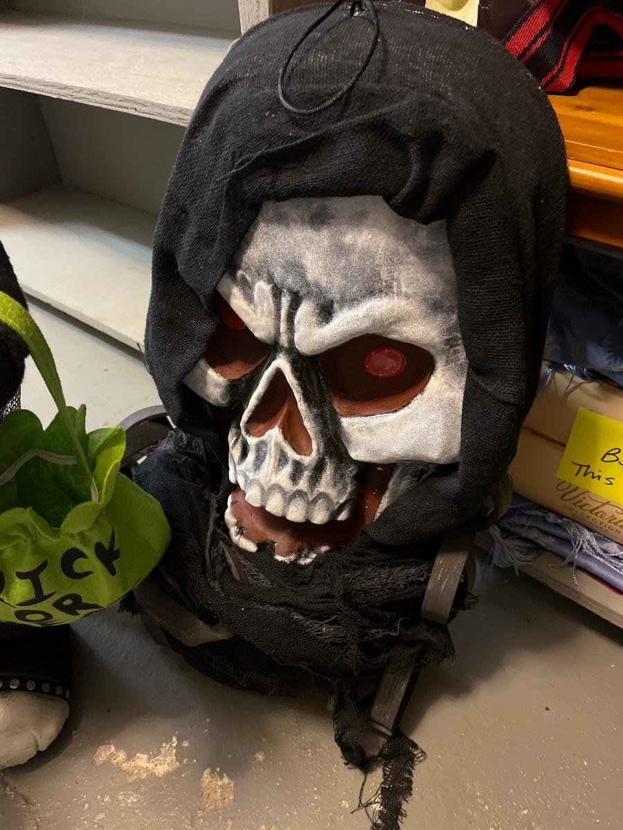Kitty stands about 24” tall. Skeleton not pulled out. Assume it’s about 5’ tall