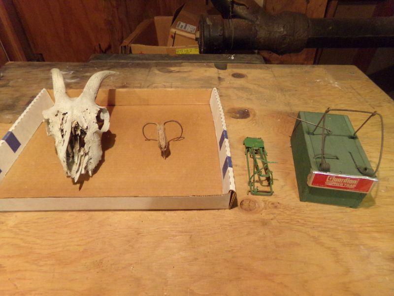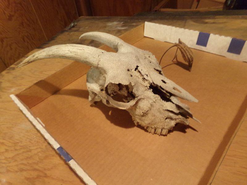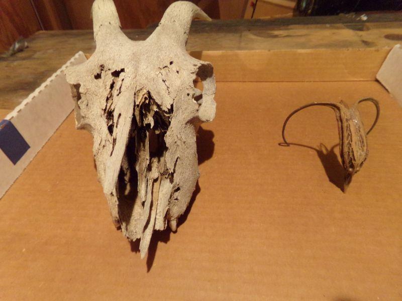 GENUINE SKULL AND A DRIED PLANT THAT LOOKS LIKE A SMALL SKULL